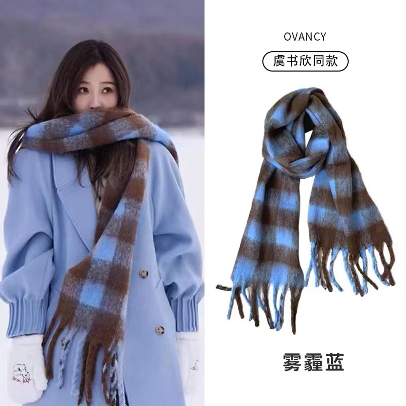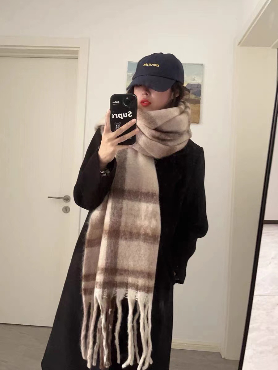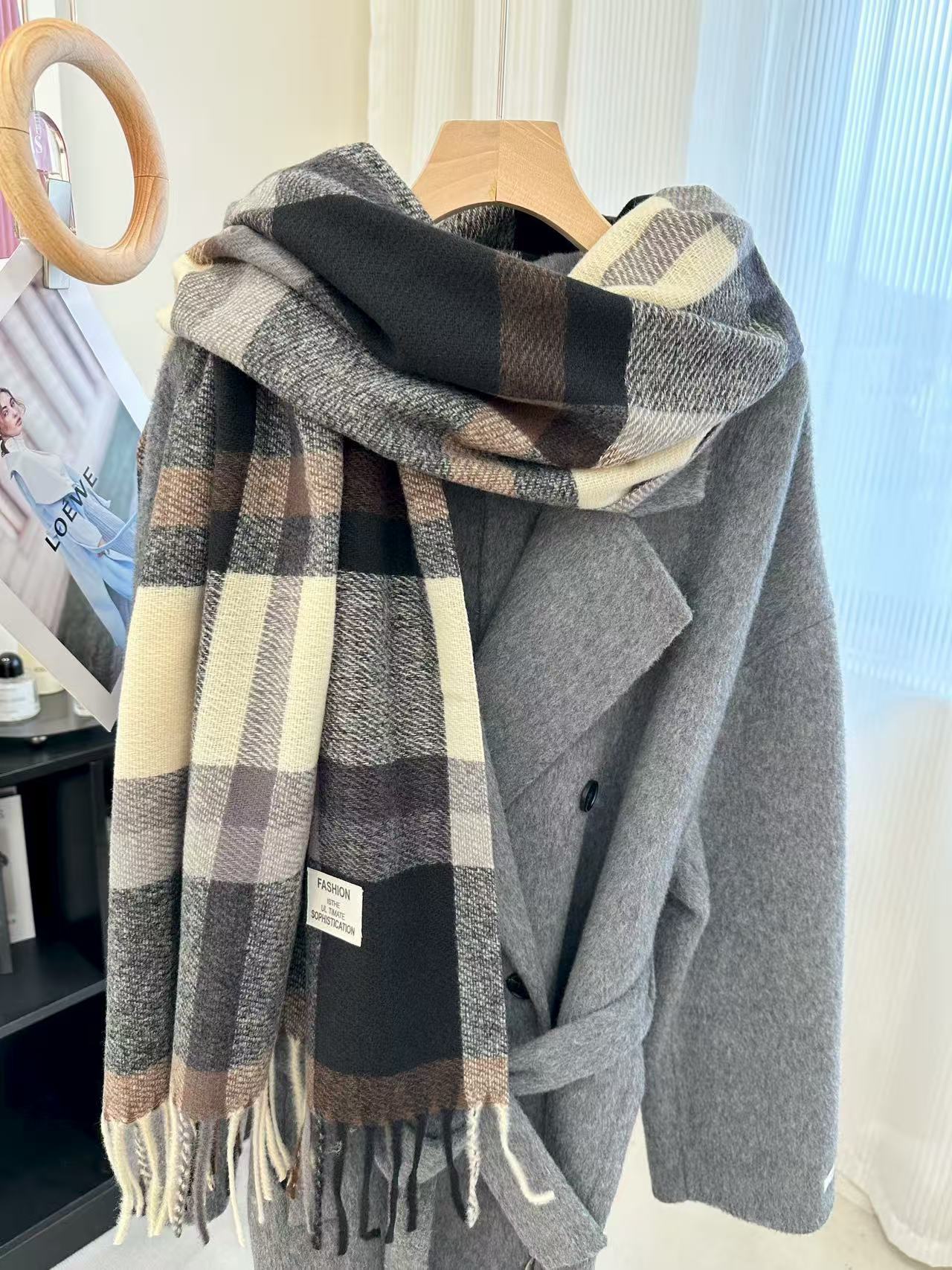 여성을위한 고급 격자 무늬 스카프 겨울 2024 새로운 한국어 버전 다목적 학생 귀여운 커플 두꺼운 따뜻한 스카프스토어 가기