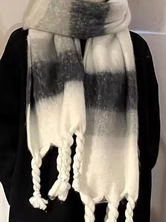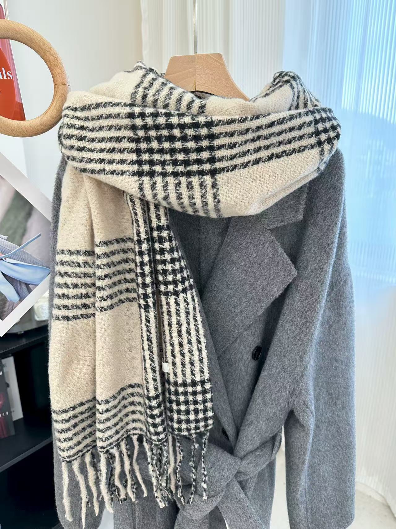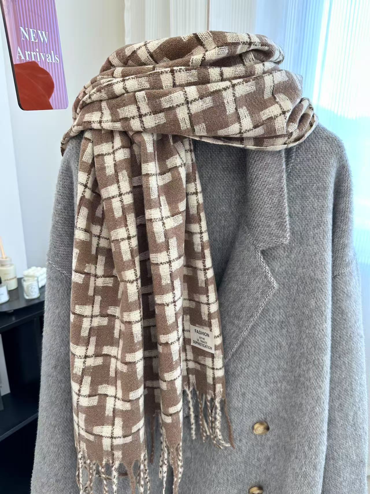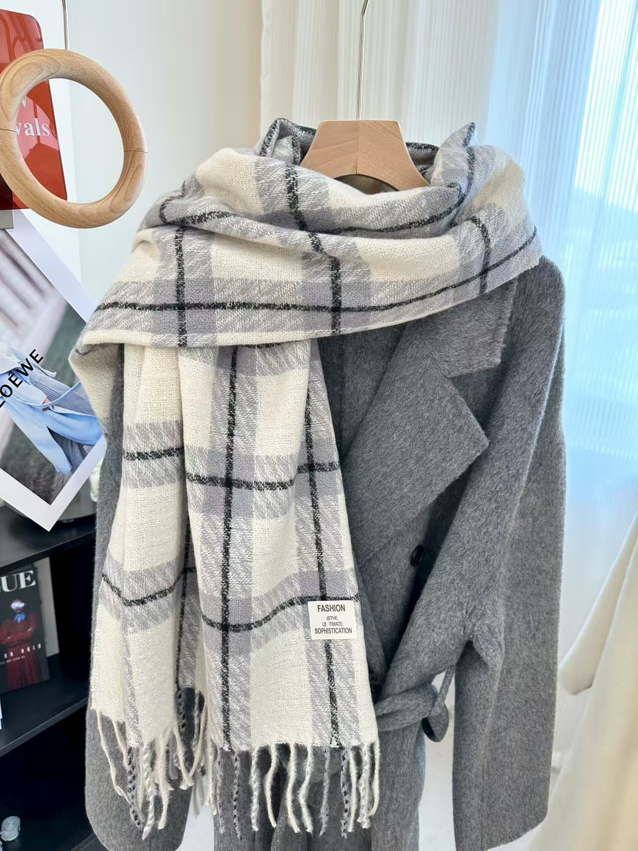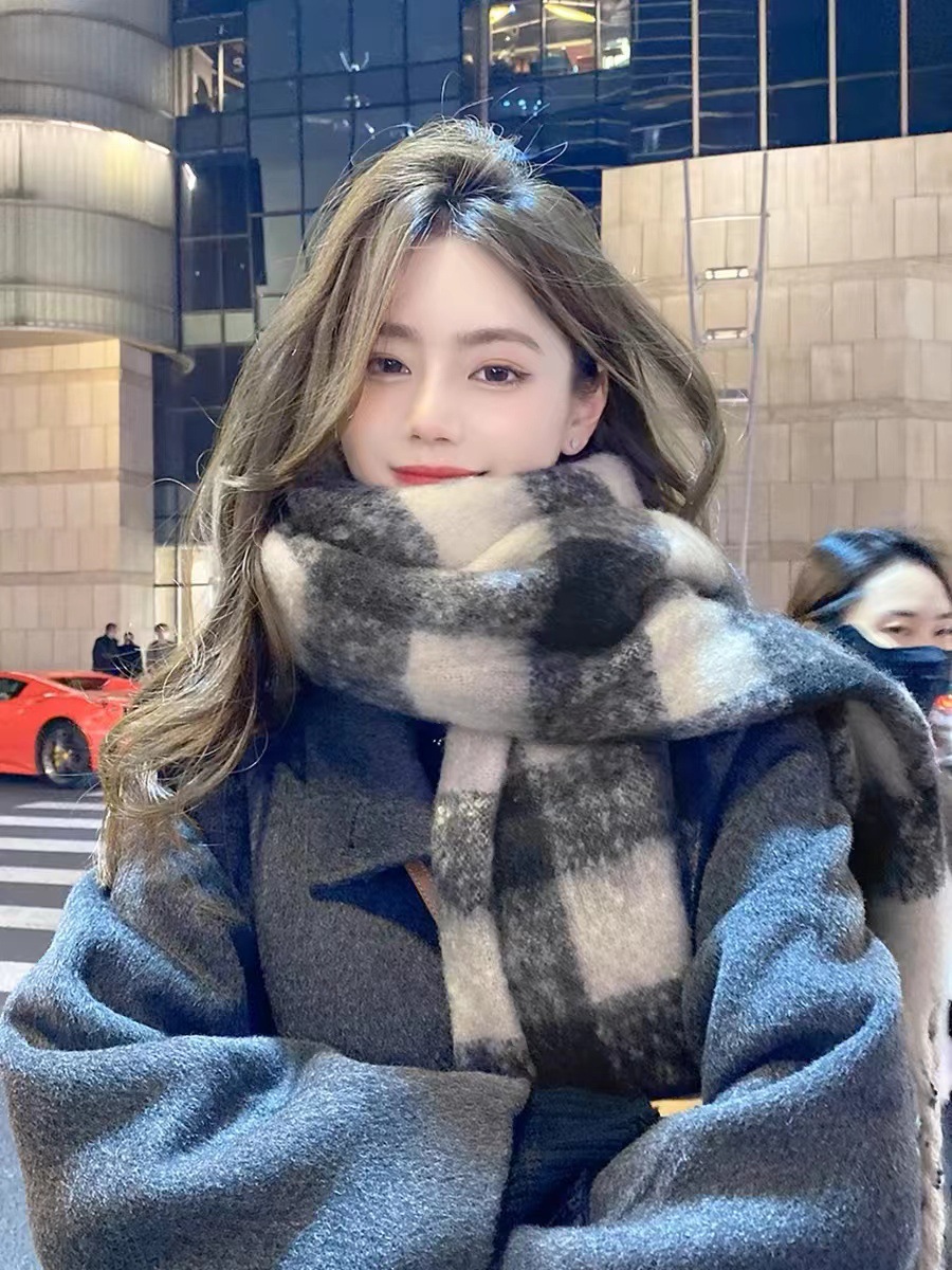 여성을위한 고급 격자 무늬 스카프 겨울 2024 새로운 한국어 버전 다목적 학생 귀여운 커플 두꺼운 따뜻한 스카프