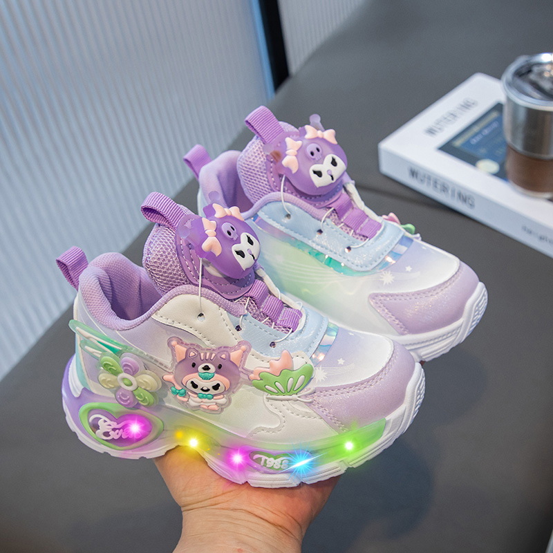 2025 봄 새로운 어린이 Kuromi 스포츠 신발 공주 조명 캠퍼스 운동화 통기성 소녀 빛나는 신발