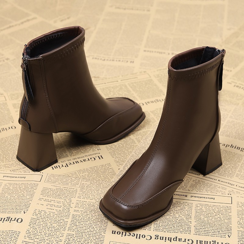 부드러운 가죽 얇은 프랑스 발목 부츠 하이 엔드 센스 작은 발목 부츠 여성의 가을 2024 새로운 봄과 가을 싱글 부츠 청키 힐 하이힐스토어 가기