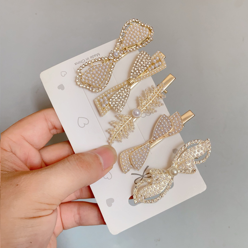 한국 스타일 활 머리핀 인터넷 축하 한 캐릭터 클립 펄 사이드 클립 하이 그레이드 뱅 헤어핀 사이드 클립 헤어 액세서리 여성