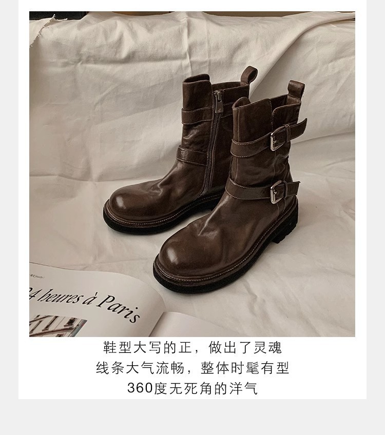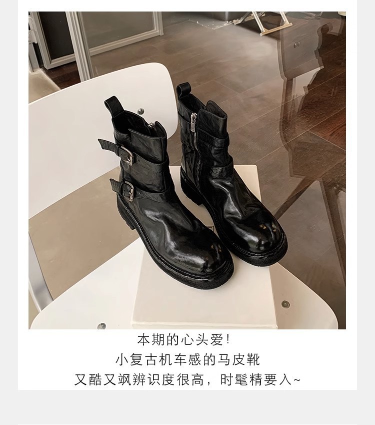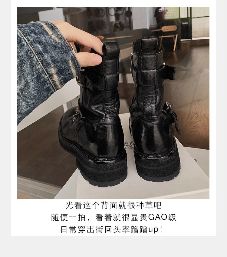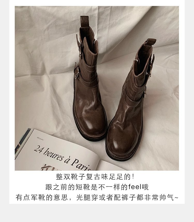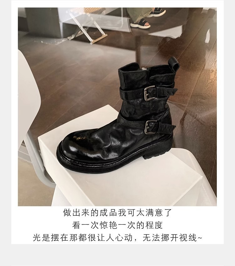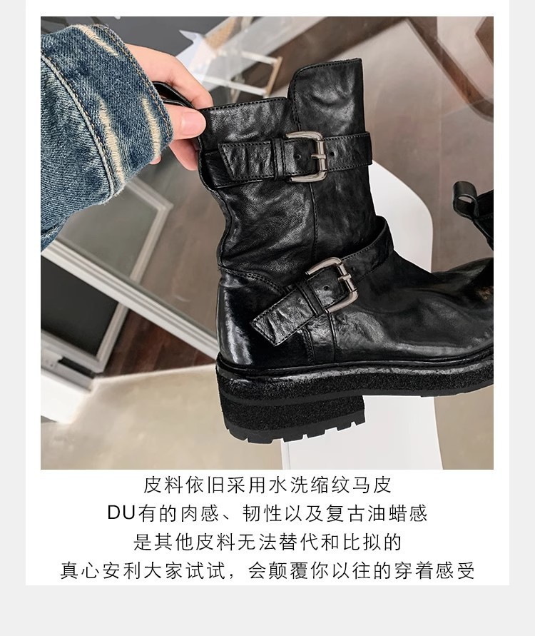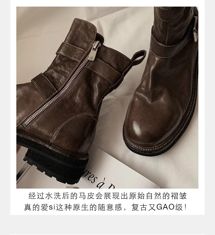 포도 엄마 studiolee 인터넷 축하 폭발 세척 수축 곡물 Cowhide 두꺼운 바닥 얇은 짧은 부츠 오토바이 마틴 부츠 여성