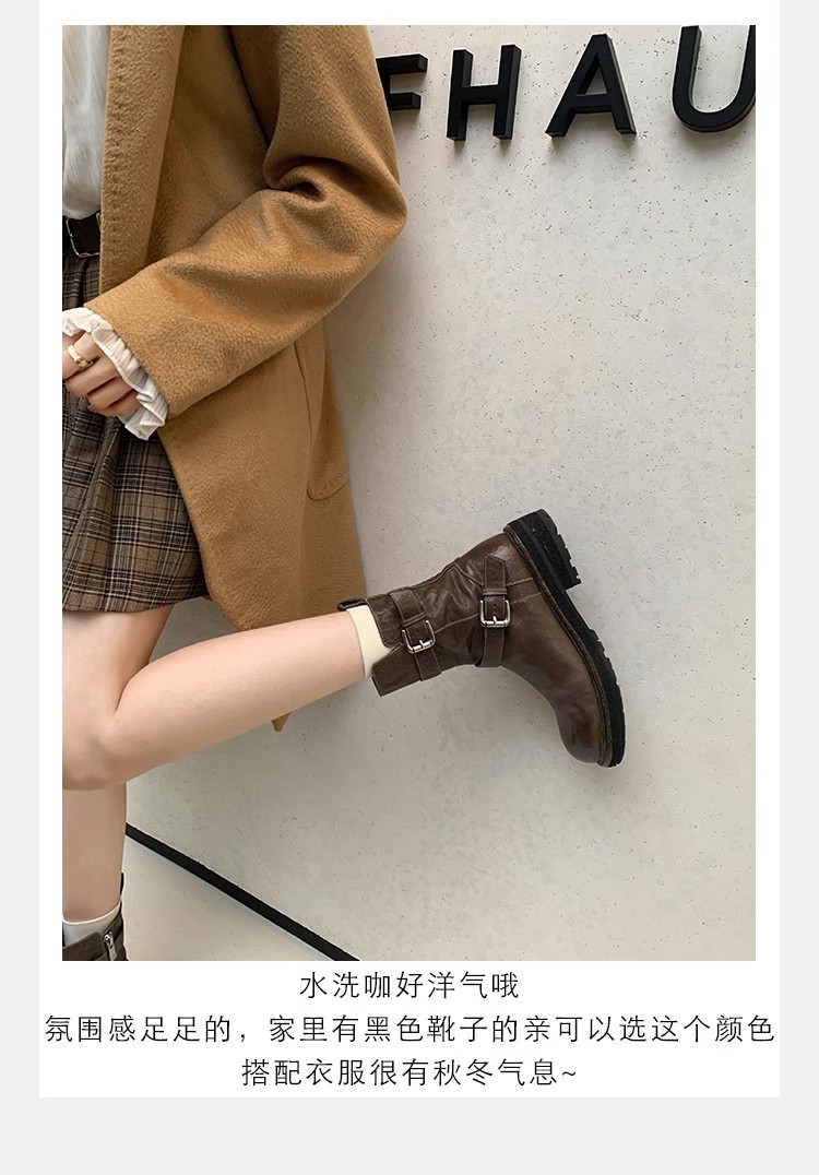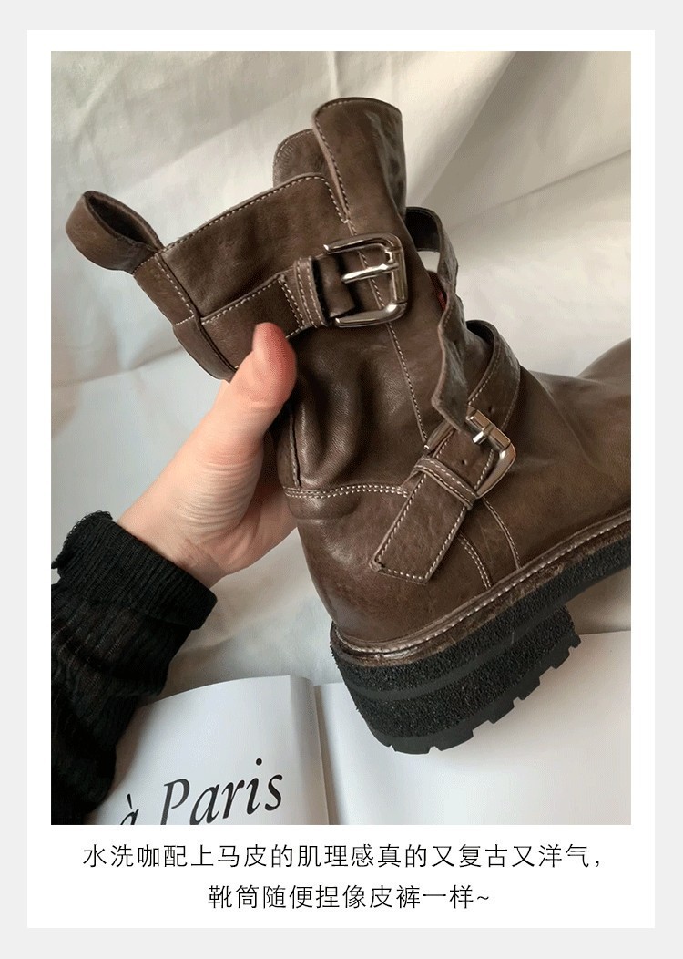 포도 엄마 studiolee 인터넷 축하 폭발 세척 수축 곡물 Cowhide 두꺼운 바닥 얇은 짧은 부츠 오토바이 마틴 부츠 여성스토어 가기