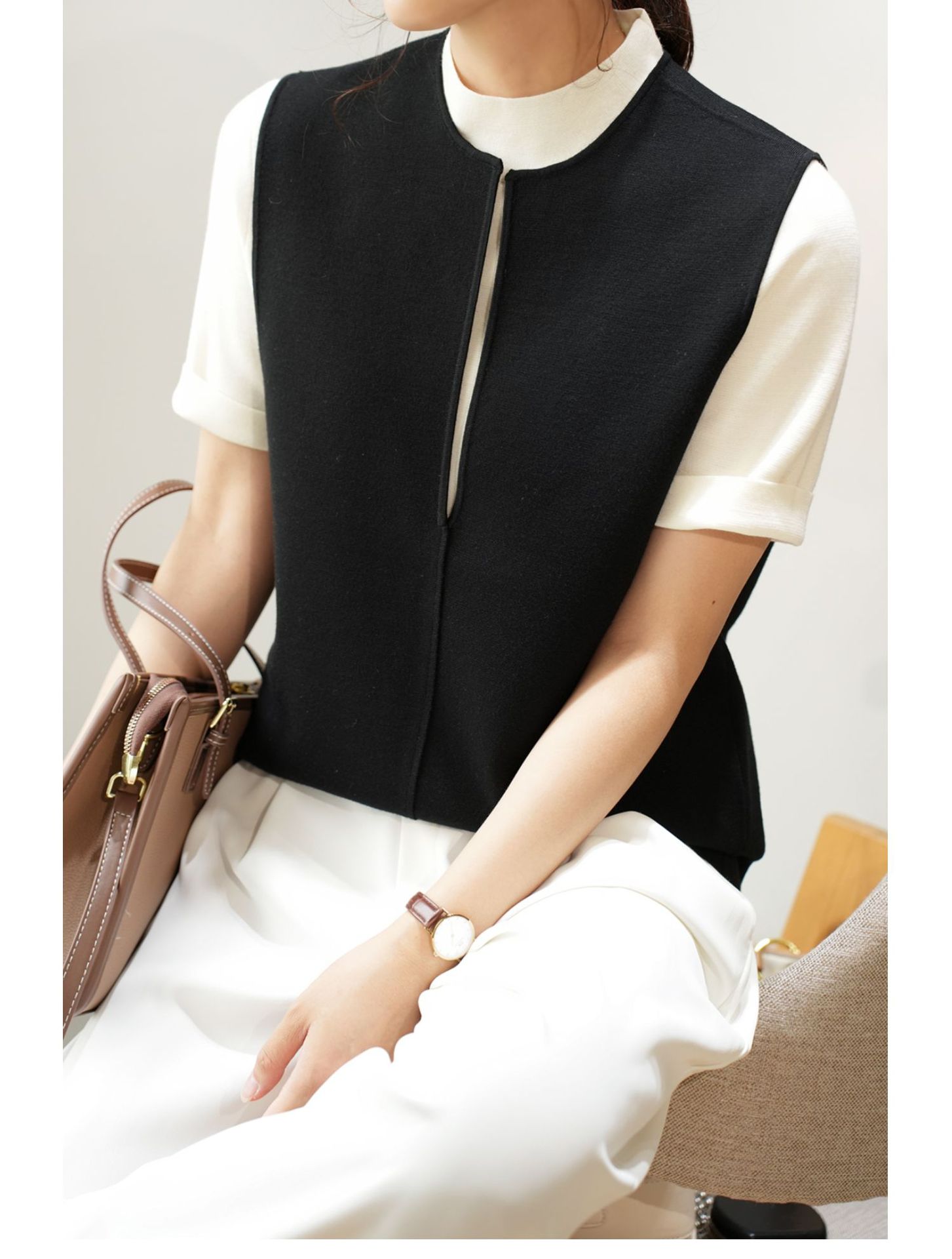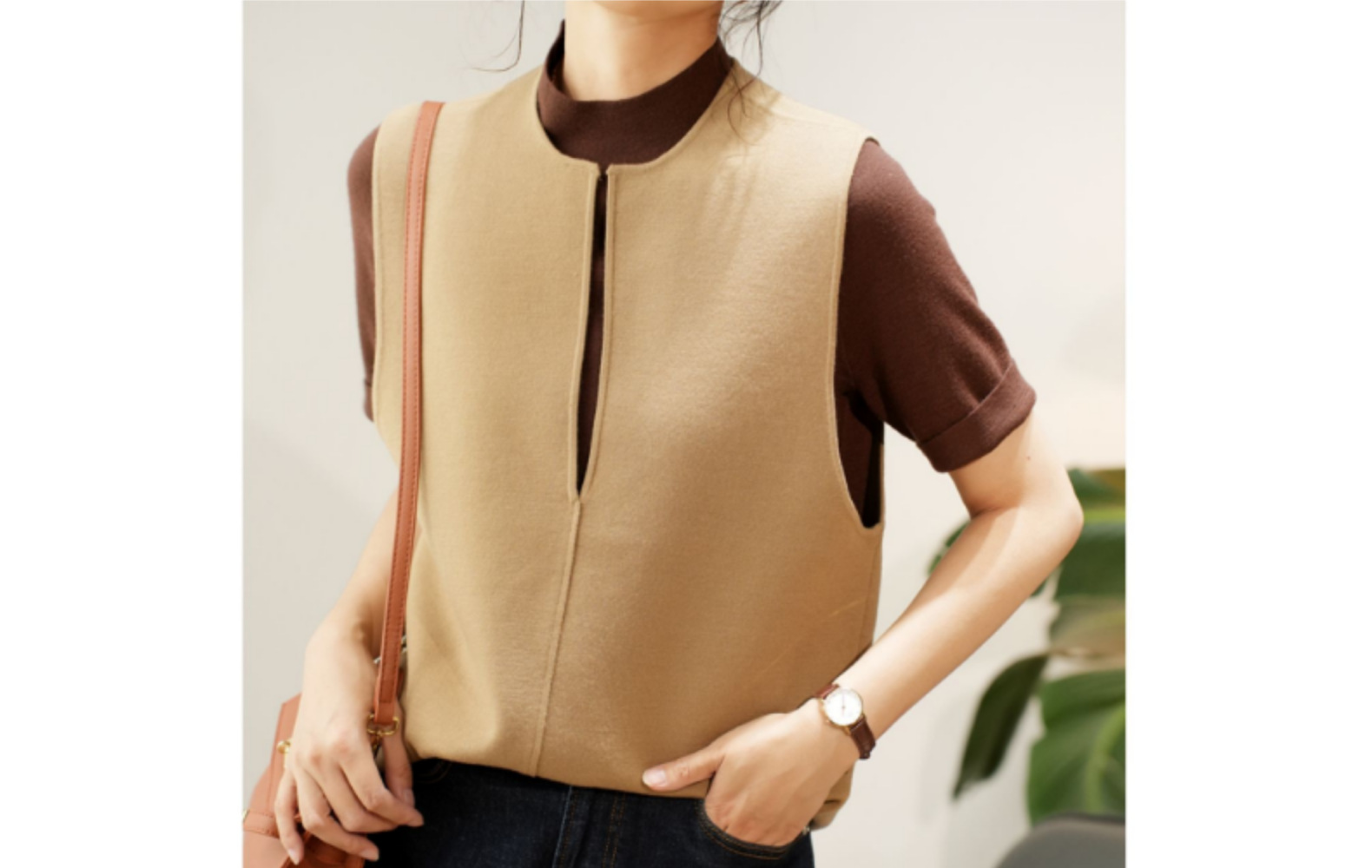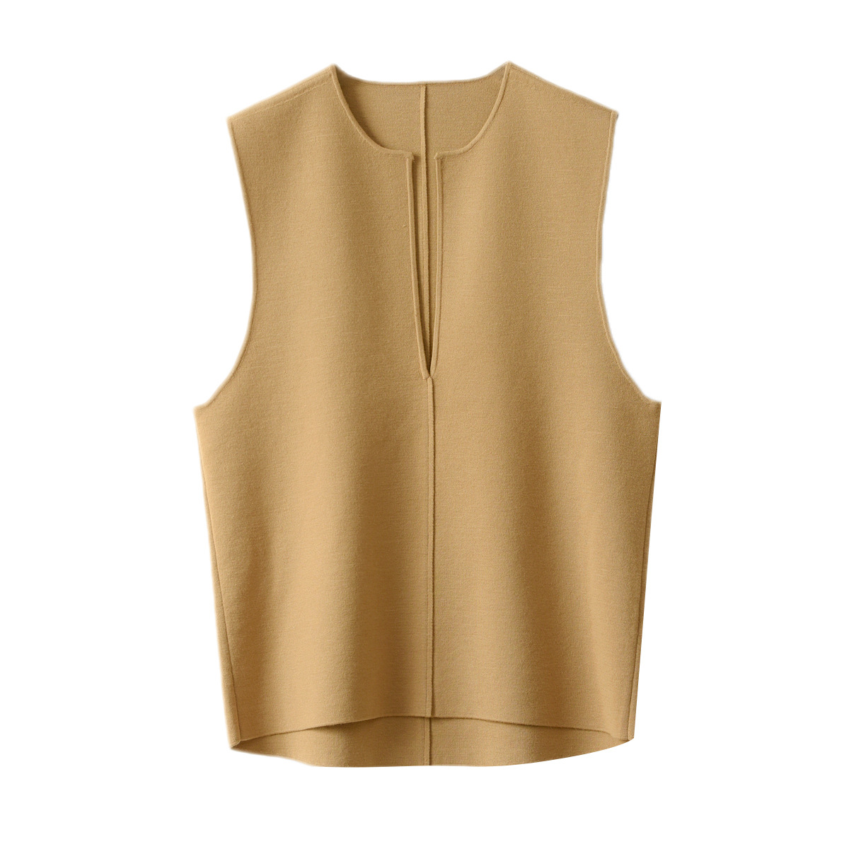 여성용 4바늘 공예 울 반팔 조끼, 우아한 빅 브이넥 레이어드 민소매 조끼, 가을 여성복스토어 가기