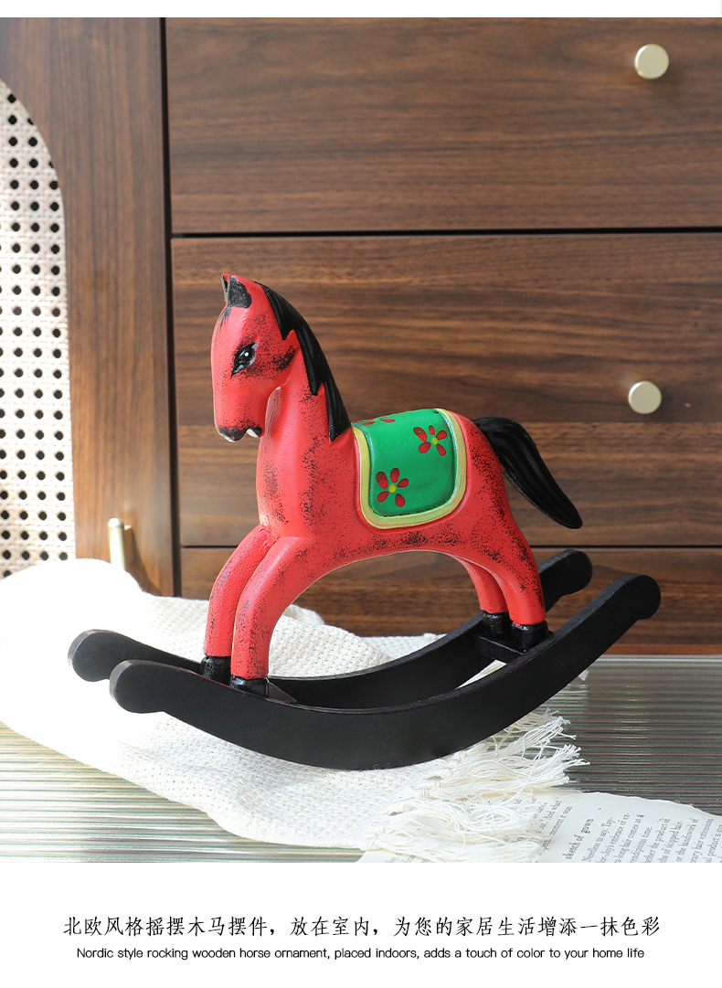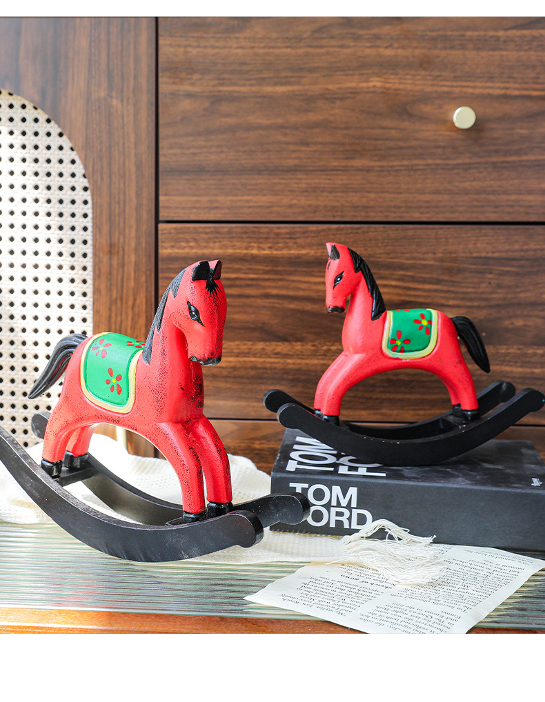 현대 간단한 창조적 인 나무 빨간 스윙 말 장식품 홈 스터디 레스토랑 데스크탑 모델 룸 창 장식스토어 가기