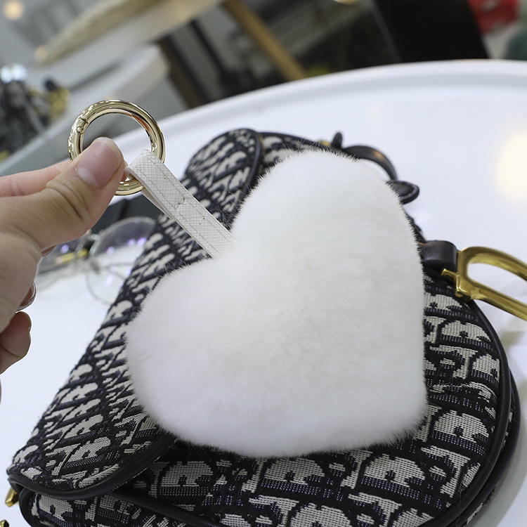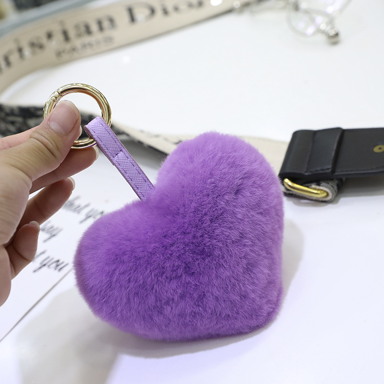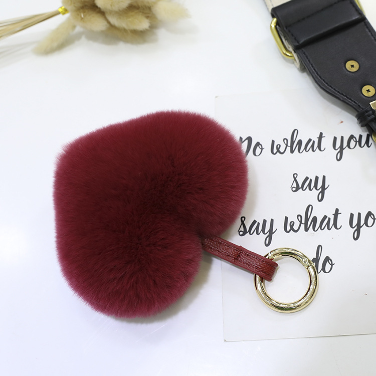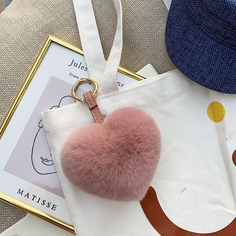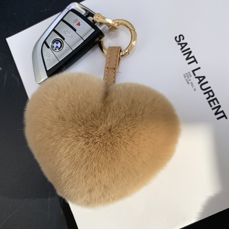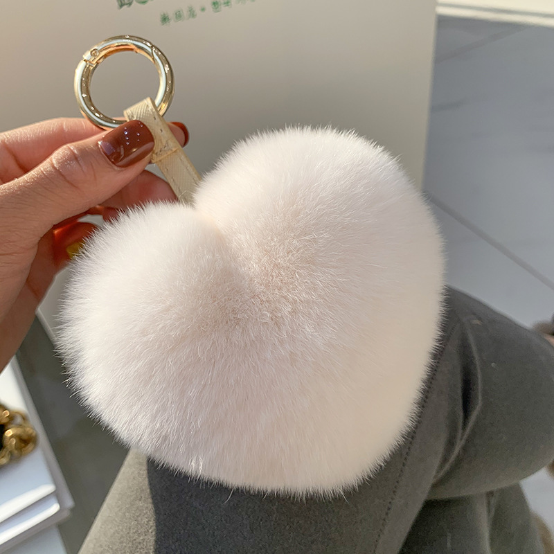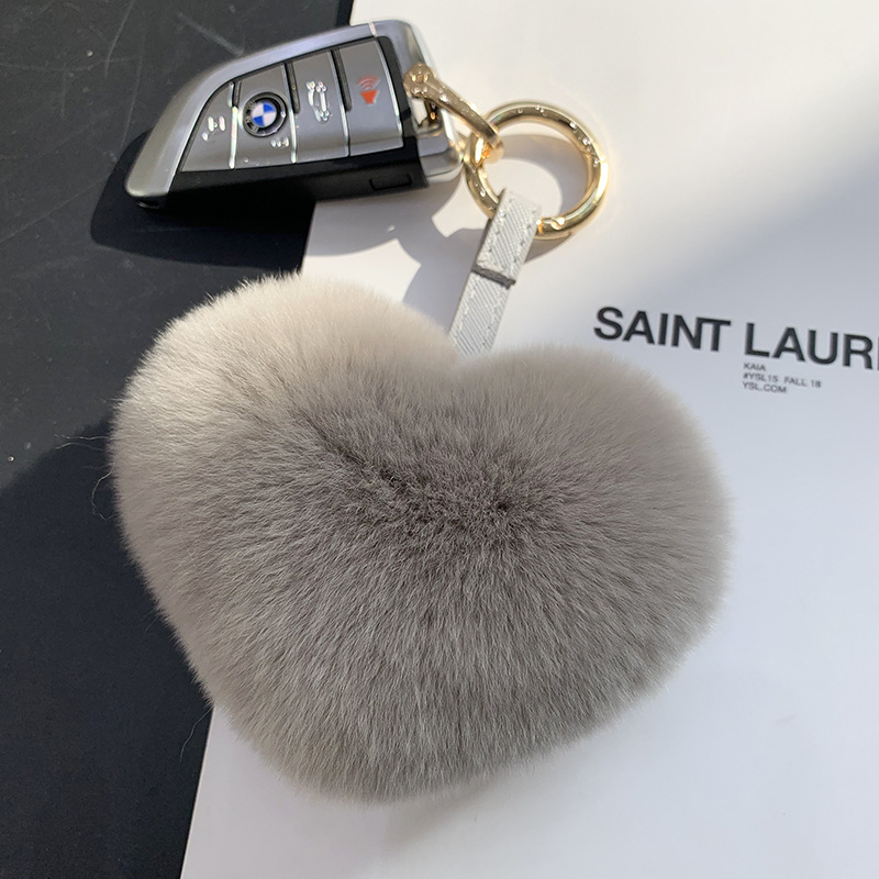 귀여운 렉스 토끼 폼폼 볼 하트 모양의 자동차 키 체인 독특한 창조적 인 소녀 사랑 가방 펜던트 선물