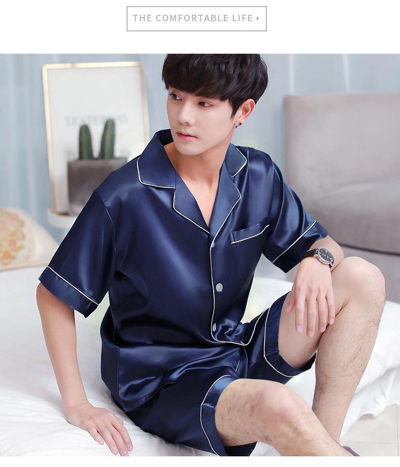 아이스 실크 잠옷 남자 여름 얇은 반팔 반바지 실크 느슨한 플러스 사이즈 청소년 패션 여름 멋진 세트스토어 가기
