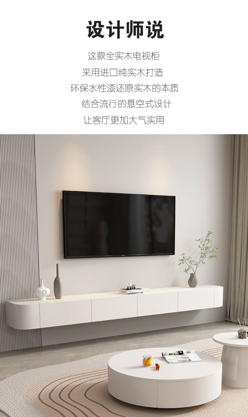 풀 솔리드 우드 서스펜드 TV 캐비닛 매달린 라이트 럭셔리 록 보드 솔리드 우드 하이 엔드 중단 된 벽 장착 인터넷 연예인 2024 소형 아파트스토어 가기