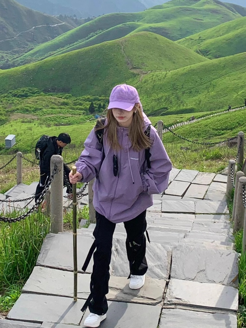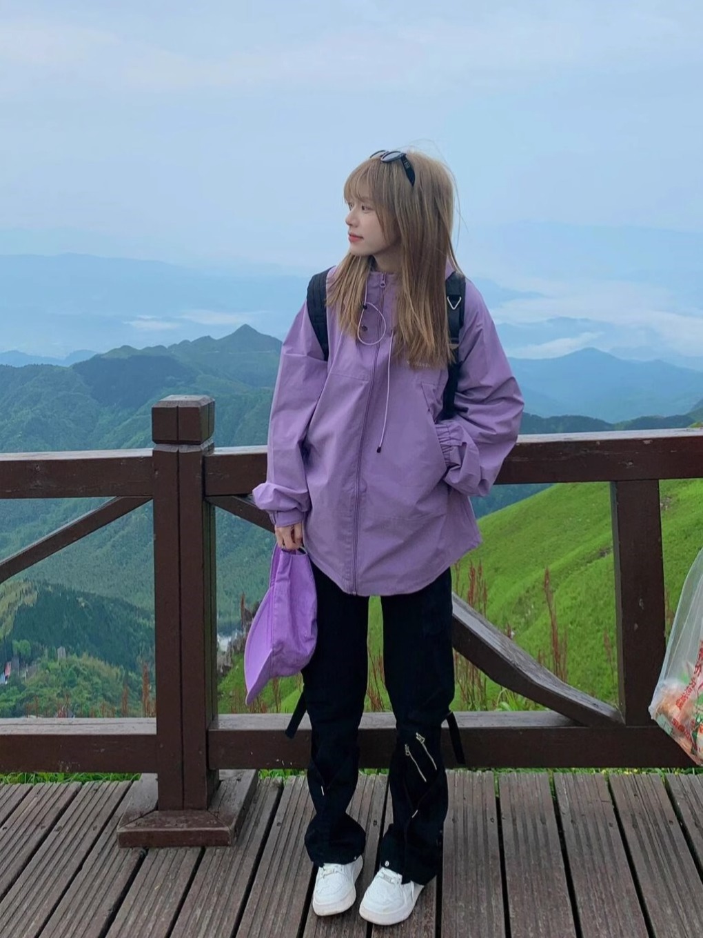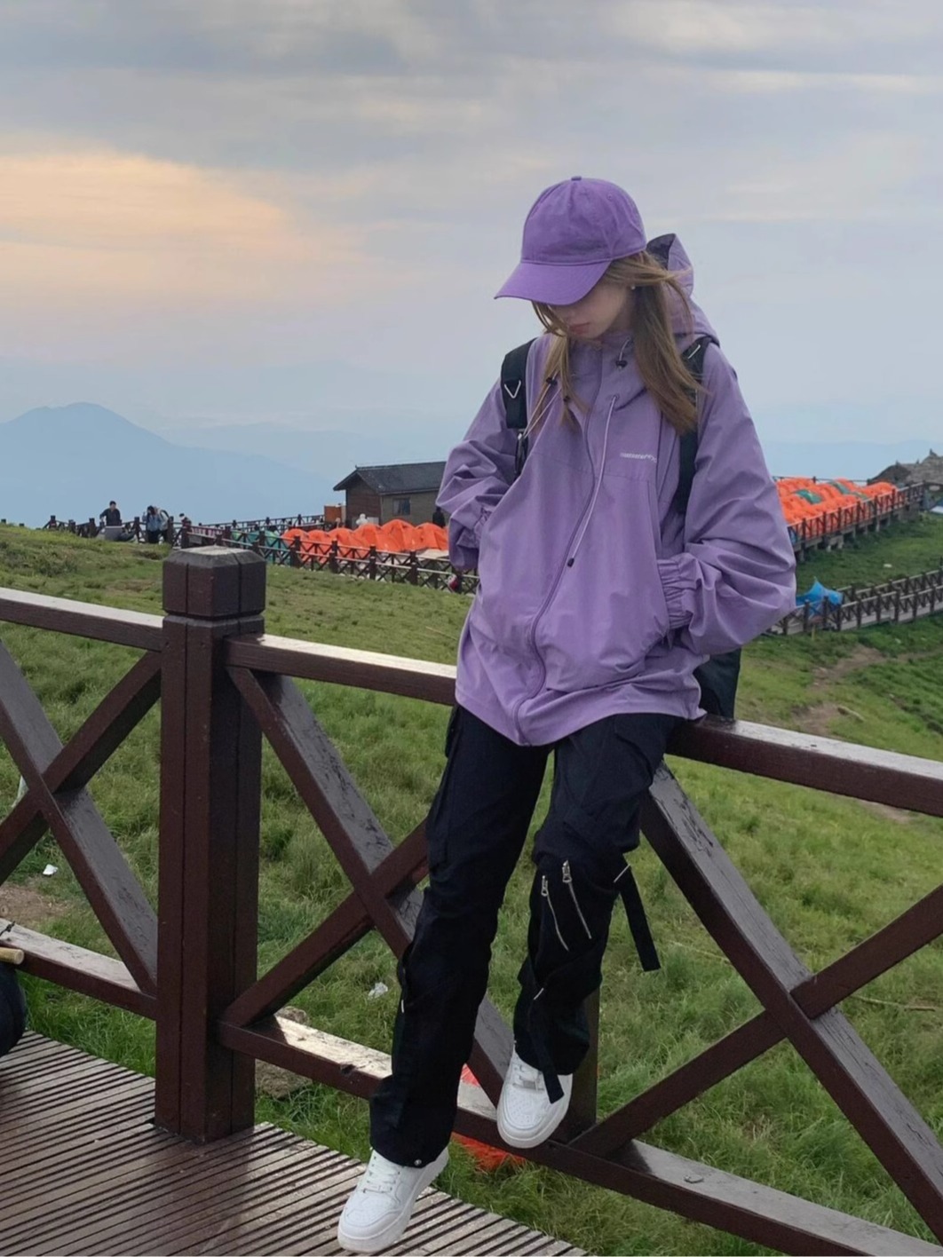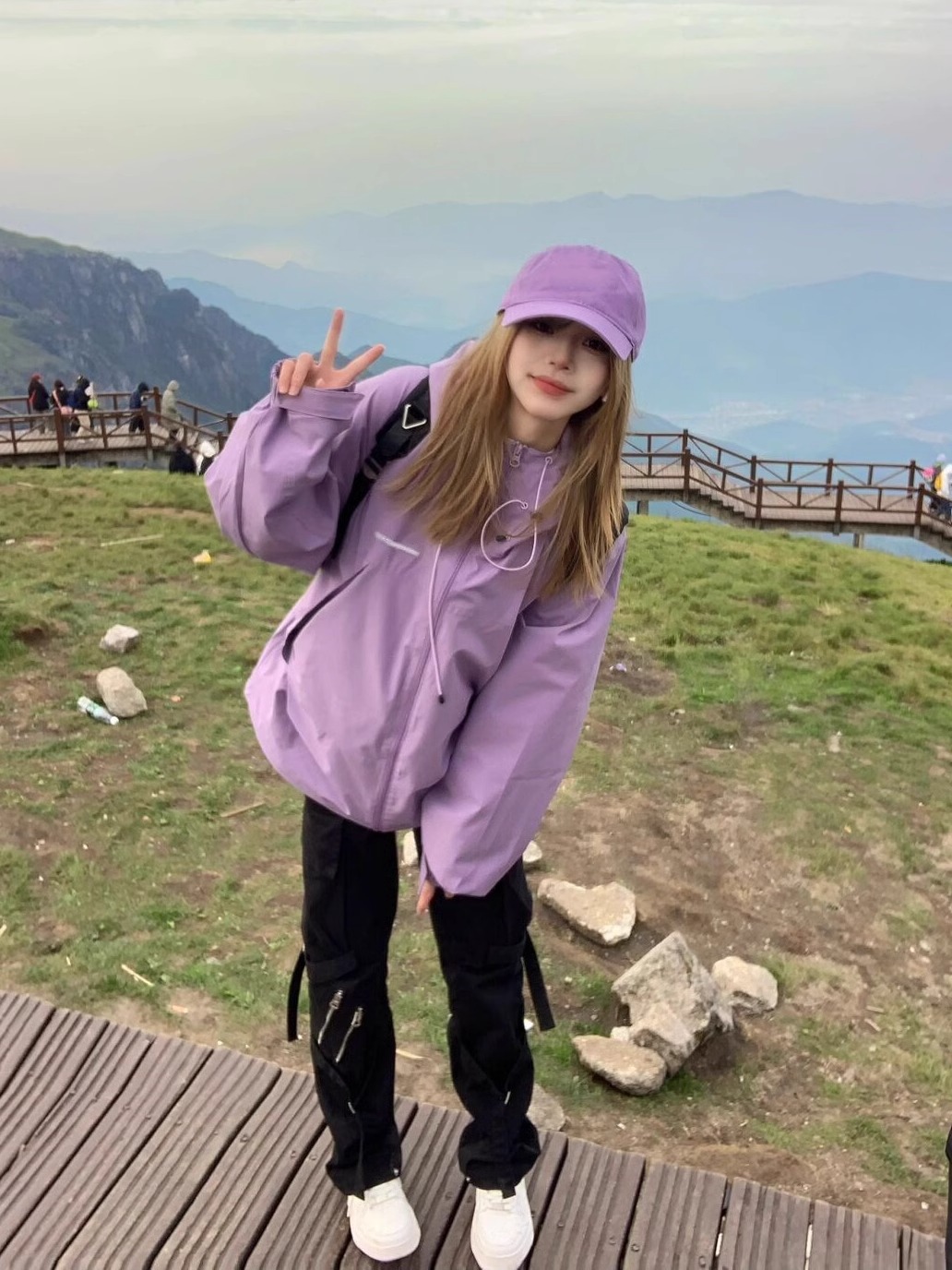 아메리칸 스타일 레트로 퍼플 재킷 여성의 봄과 가을 새로운 느슨한 후드 야외 등산 세트 커플의 세련된 재킷스토어 가기