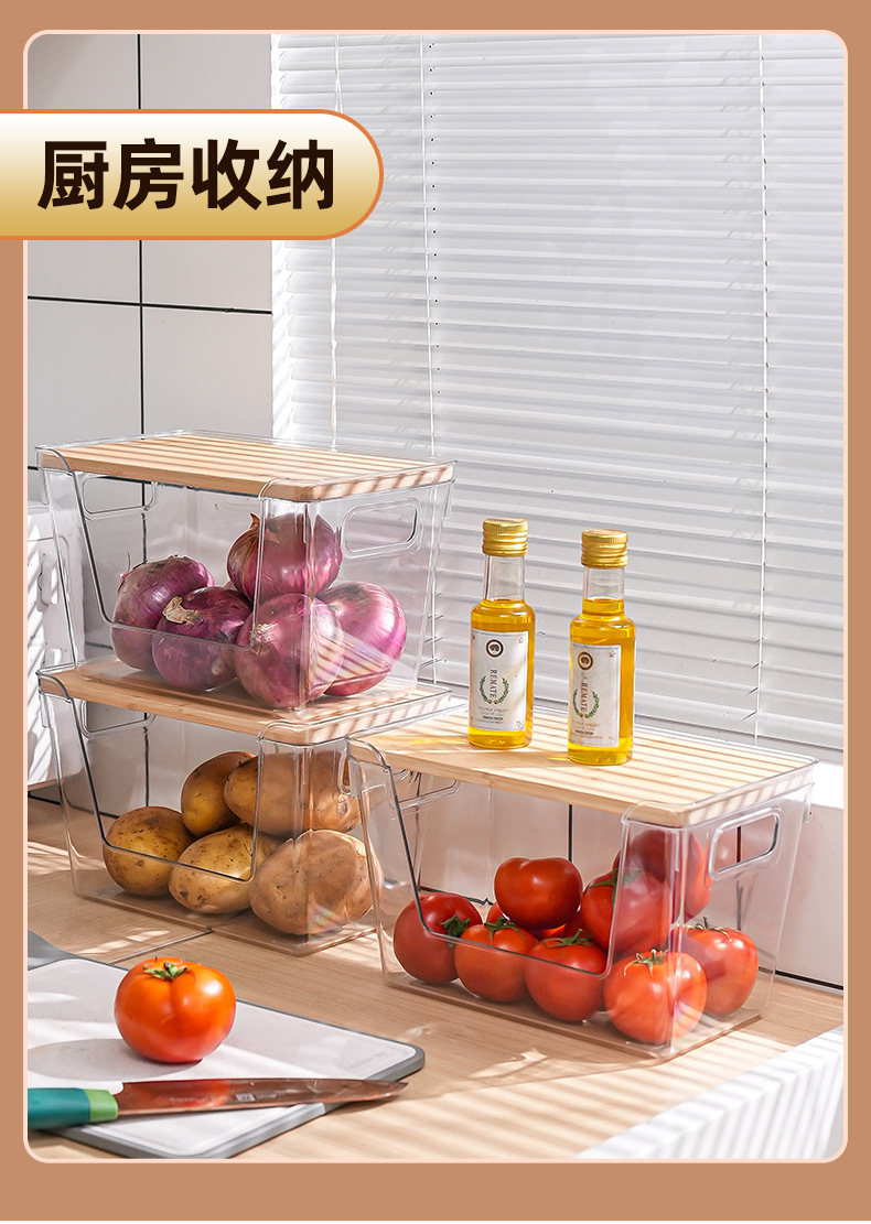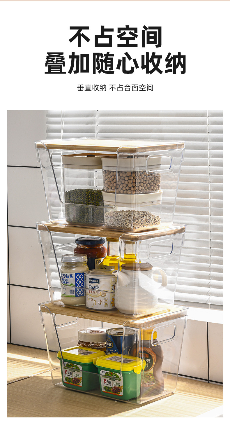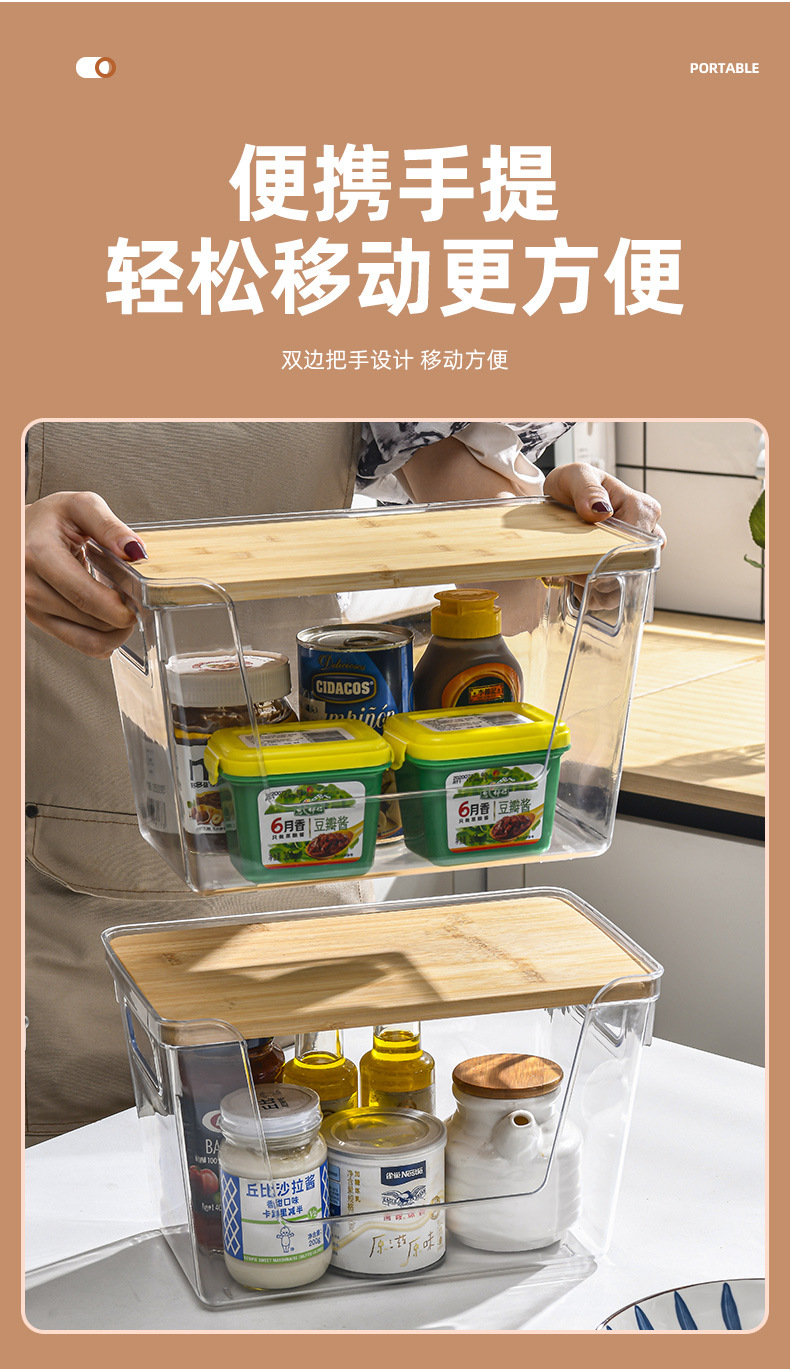 가정용 데스크탑 저장 상자 주방 테이블 조미료 다기능 저장 상자 투명 큰 나무 뚜껑 보관 상자 도매스토어 가기