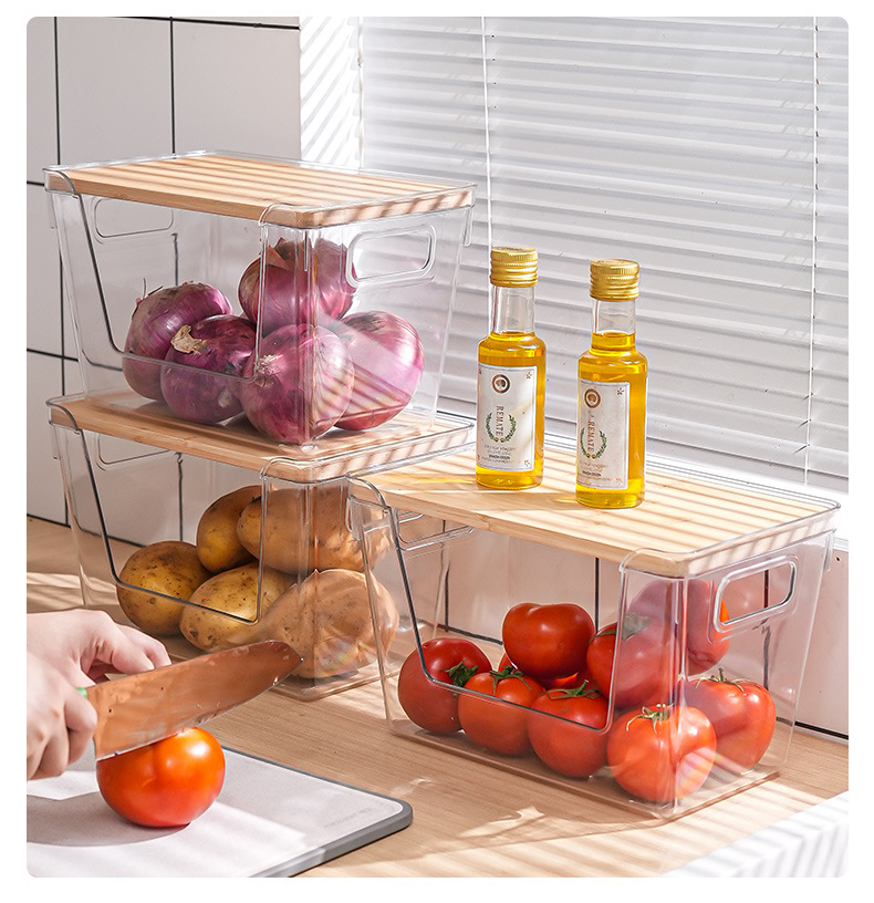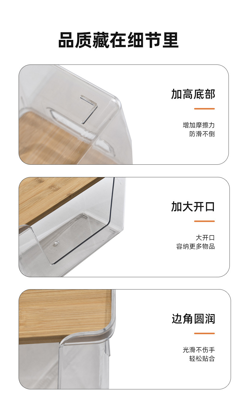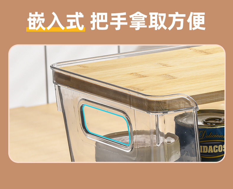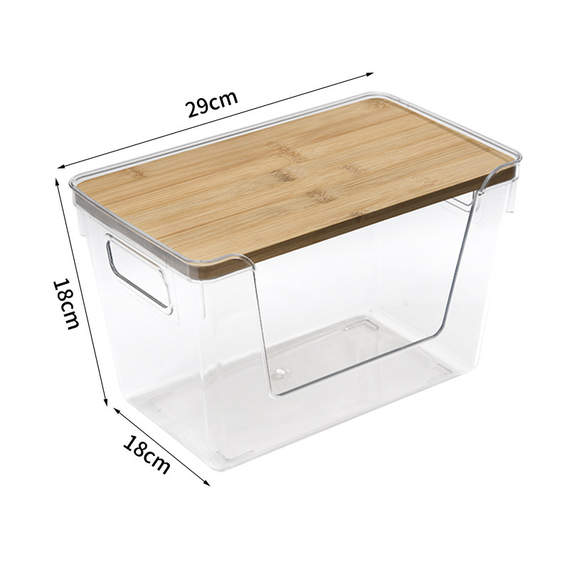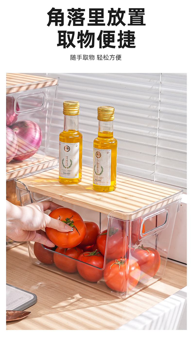 가정용 데스크탑 저장 상자 주방 테이블 조미료 다기능 저장 상자 투명 큰 나무 뚜껑 보관 상자 도매스토어 가기