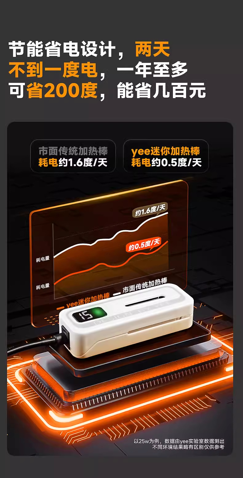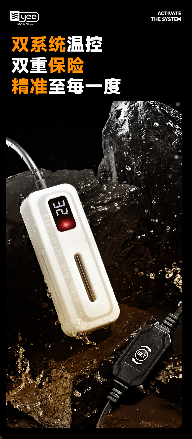 Yee 거북이 가열 막대 작은 낮은 물 수준 자동 일정한 온도 미니 절전 폭발 방지 어항 물 가열 막대 디지털 디스플레이