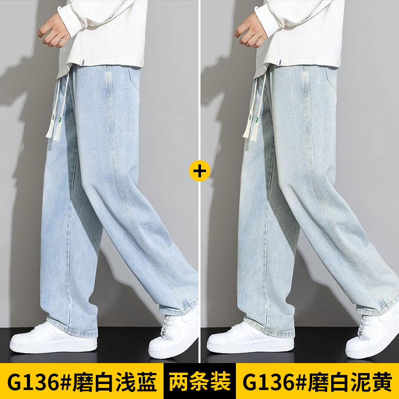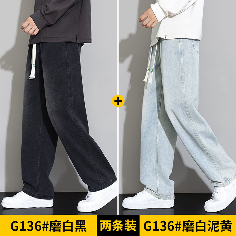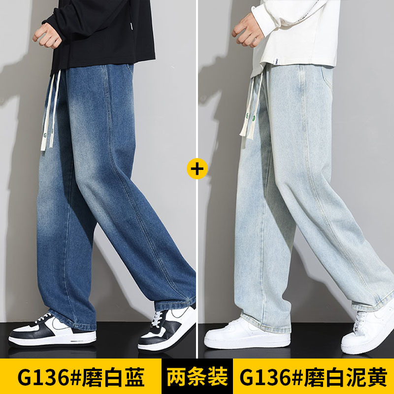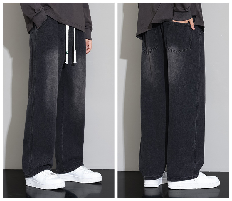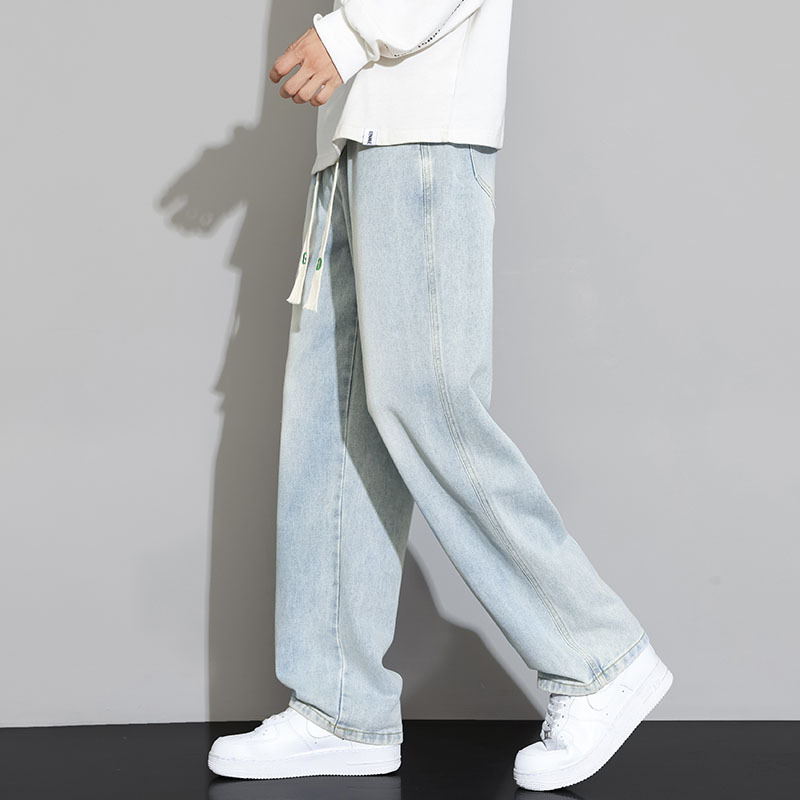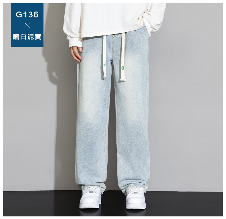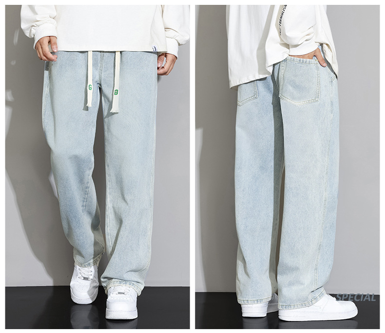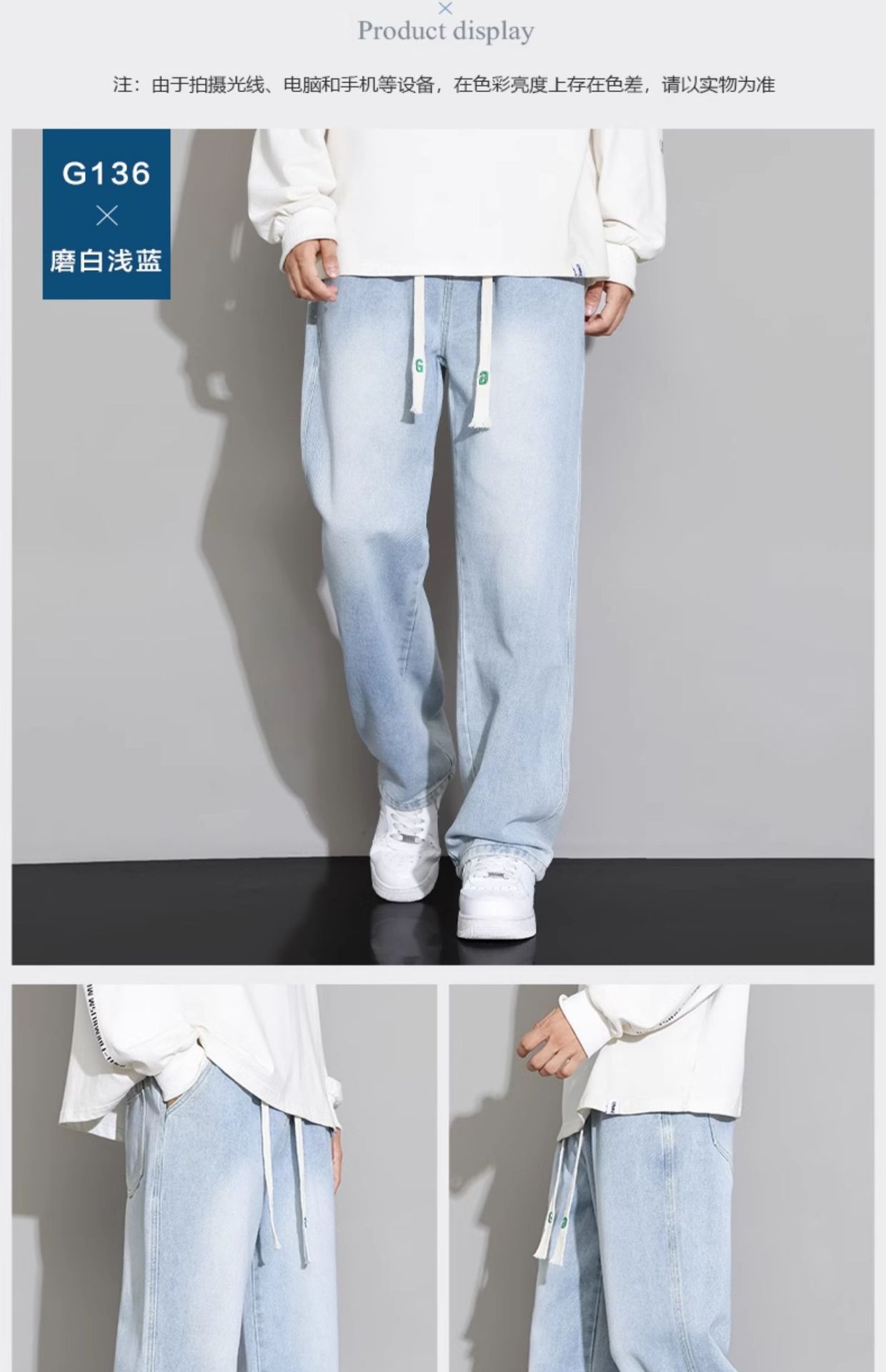 NASA 아메리칸 스타일 오래 된 청바지 남성 봄과 가을 복고풍 트렌디 브랜드 스트레이트 느슨한 올매치 와이드 레그 캐주얼 바지스토어 가기