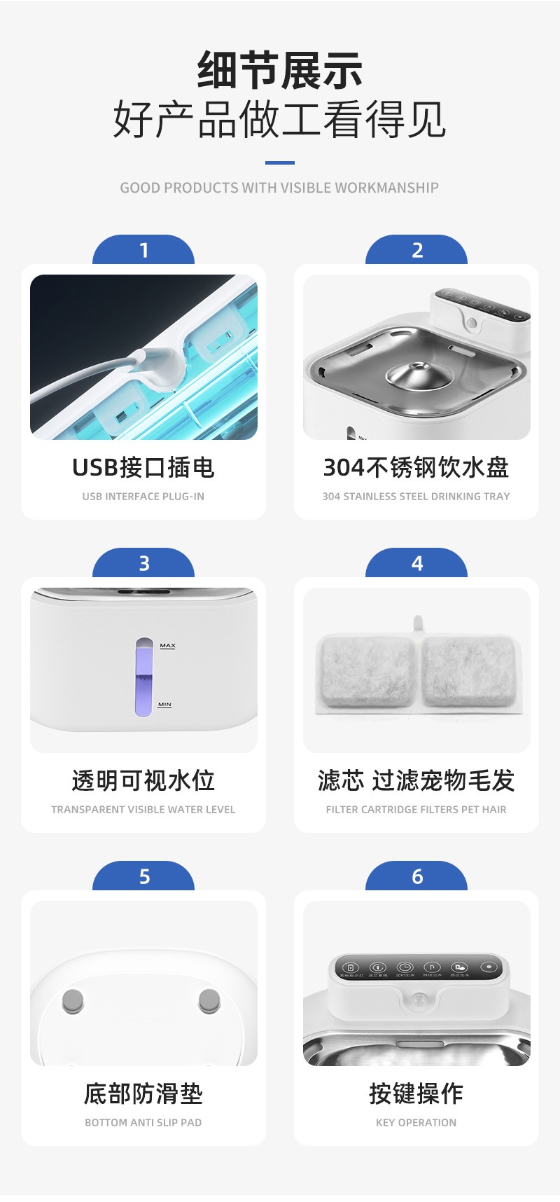 애완 동물 지능형 자동 유도 물 디스펜서 대용량 난방 일정한 온도 물 디스펜서 필터 침묵하는 고양이와 개 물 디스펜서