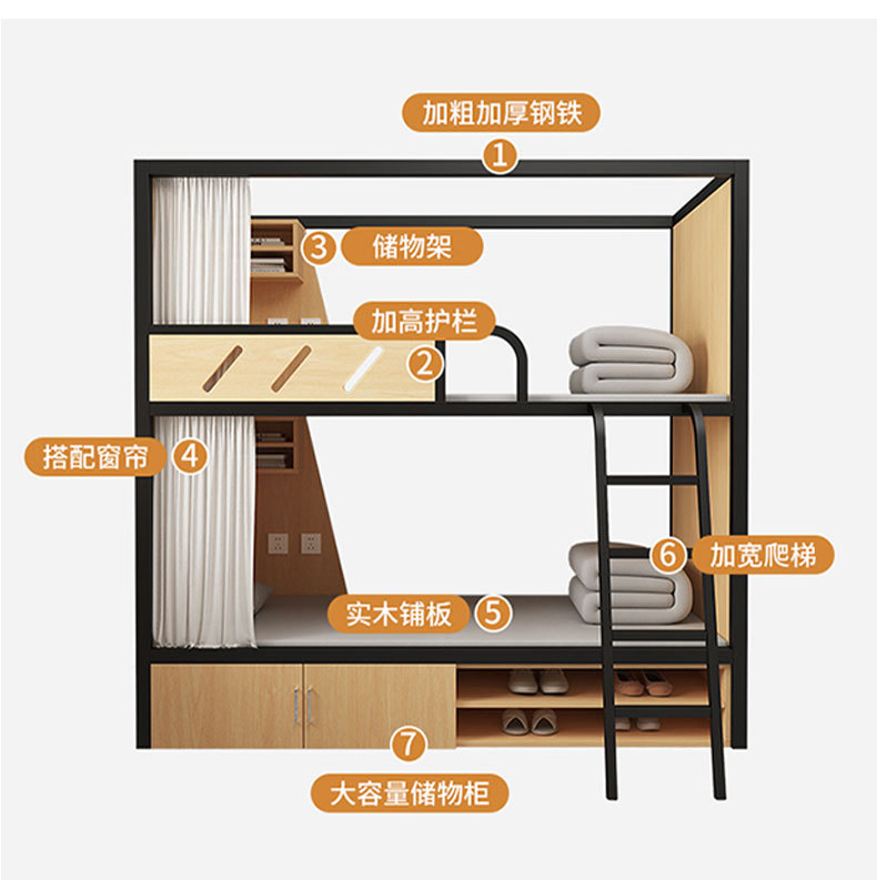 2층 철제 프레임 침대, 학교 기숙사 아파트 침대, 책상, 옷장, 더블 침대, B&B, 체인저리스 스페이스 캡슐