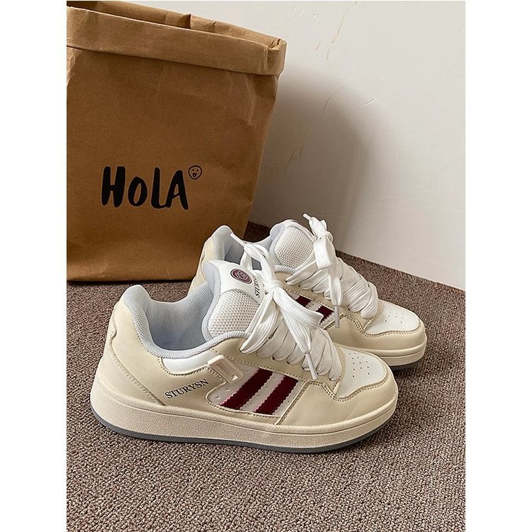 홍콩 스타일 틈새 디자인 보드 신발 여성용 트렌디 2024 가을 새 학생 올 매치 캐주얼 빵 화이트 신발