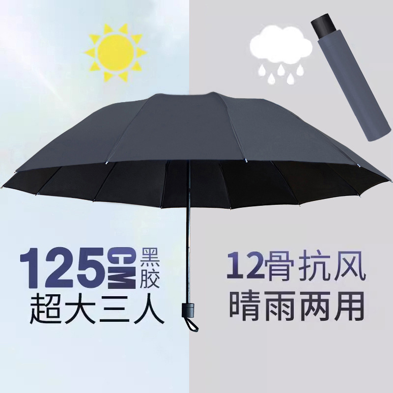 12 뼈 대형 접는 우산 여성의 맑고 비오는 이중 사용 비즈니스 검은 고무 태양 보호 자외선 보호 태양 우산