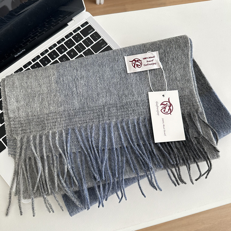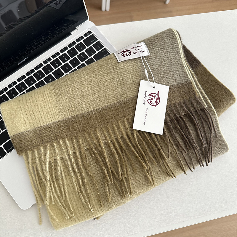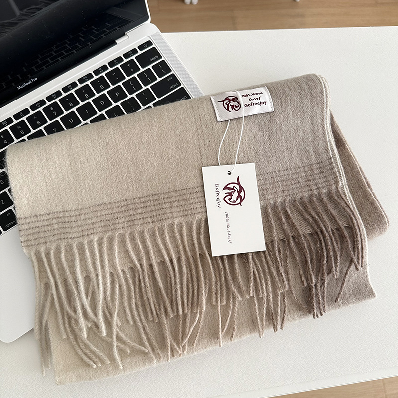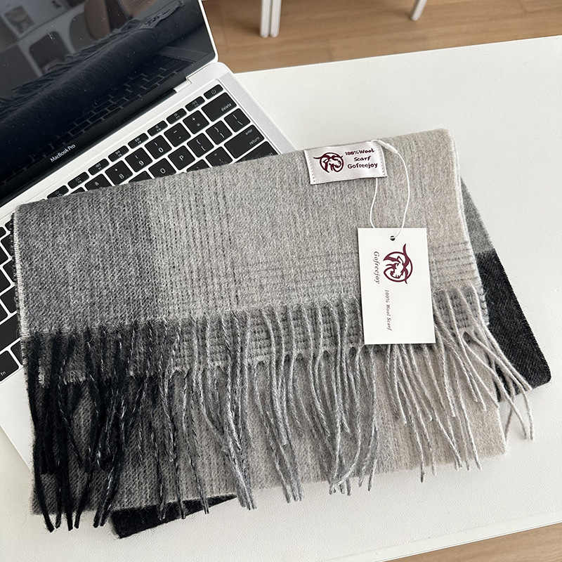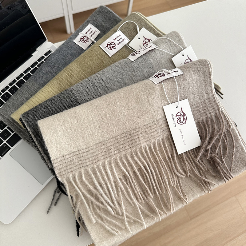 여성용 100% 호주 작은 양모 스카프 한국식 그라디언트 작은 격자 무늬 하이 퀄리티 목도리 술 따뜻한 목 선정스토어 가기