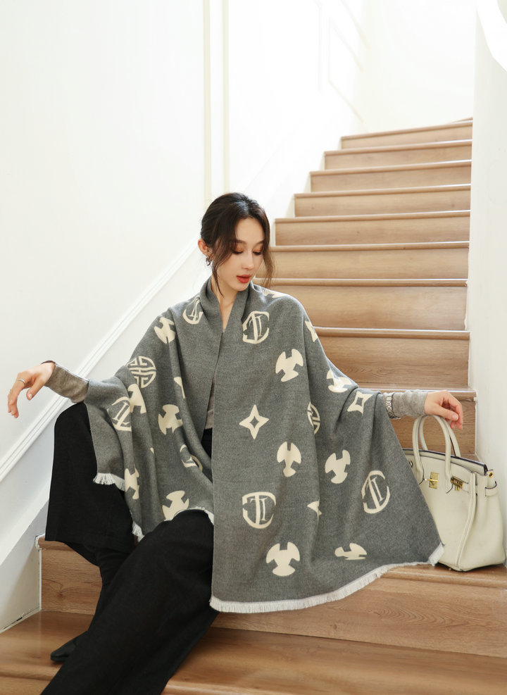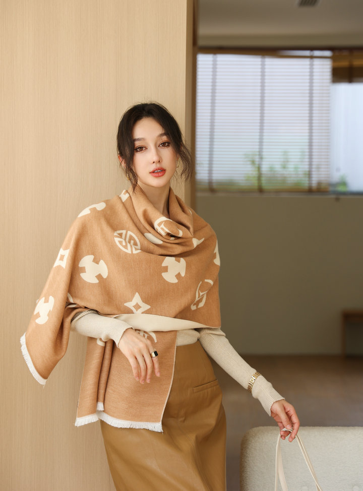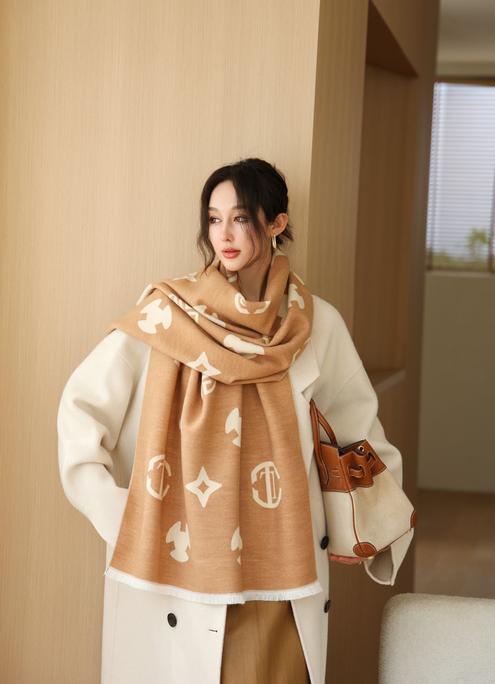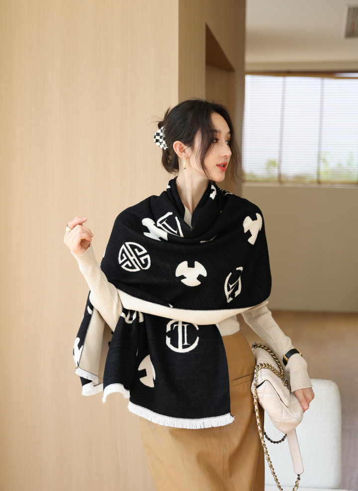 韩版秋冬季新款字母双面双色围巾女仿羊绒百搭保暖披肩两用长围脖