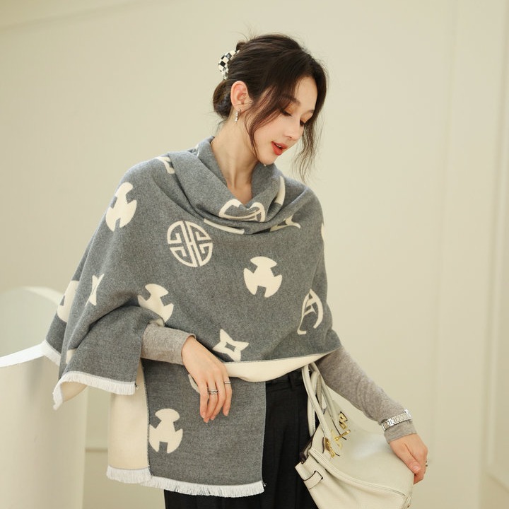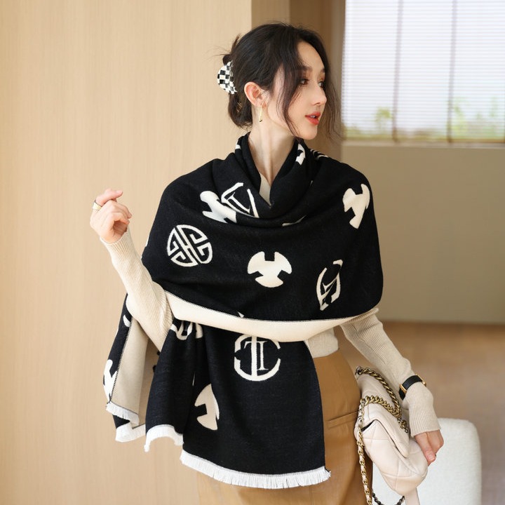 한국식 가을 · 겨울 새 편지 양면 투색 스카프 여성 모조 캐시미어 올매치 따뜻한 목도리 이중 목적 롱 스카프