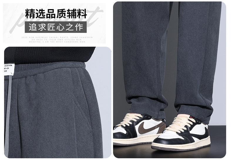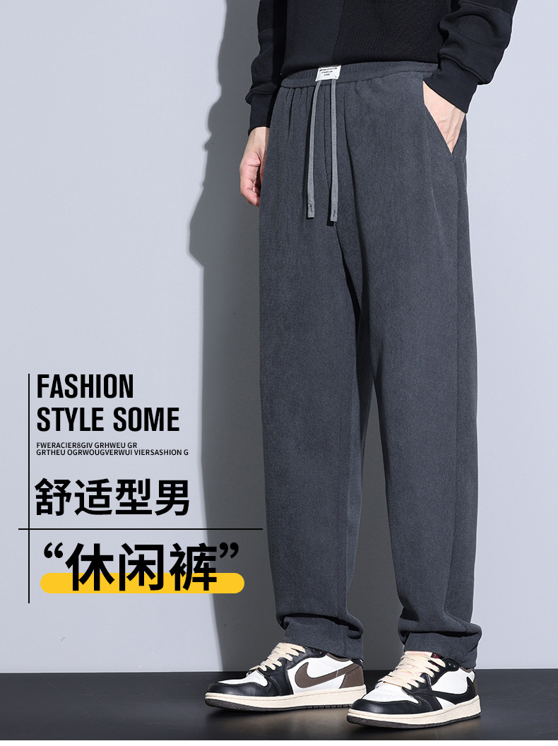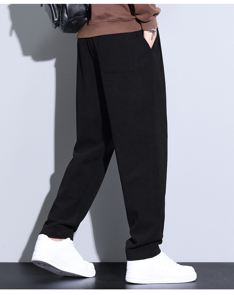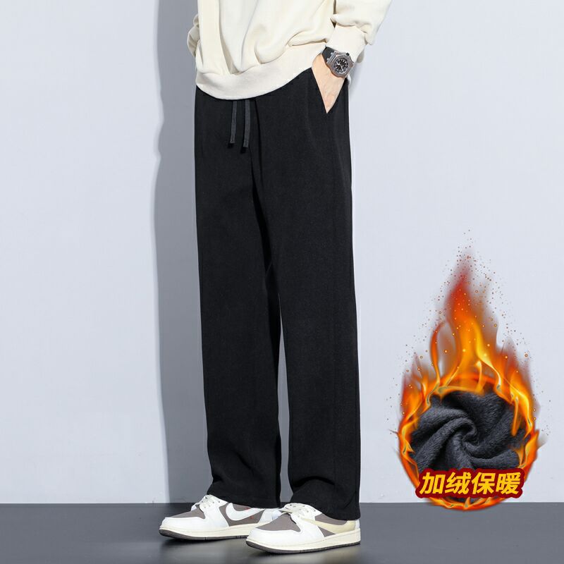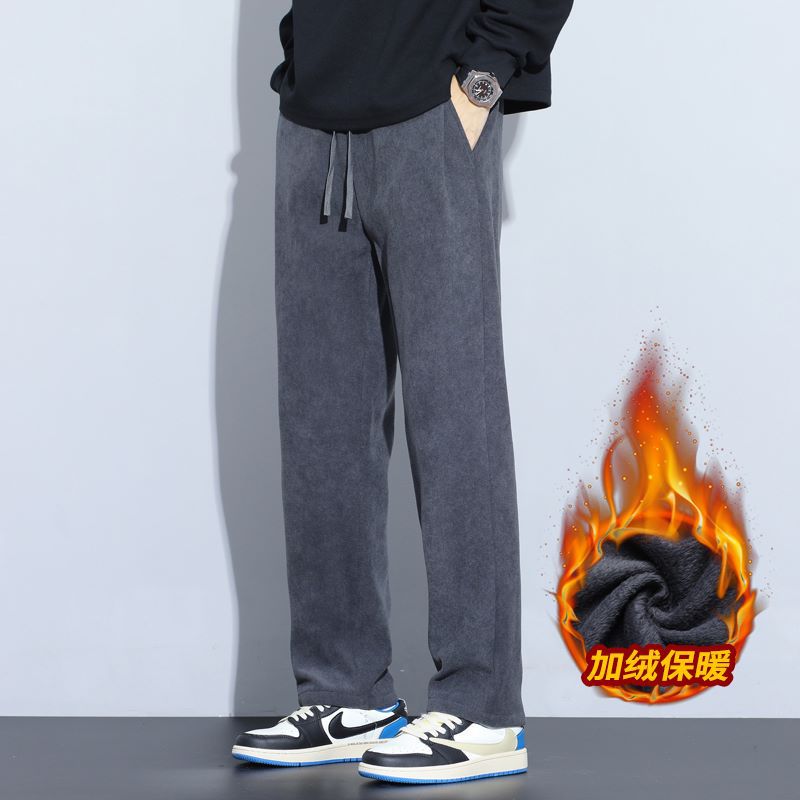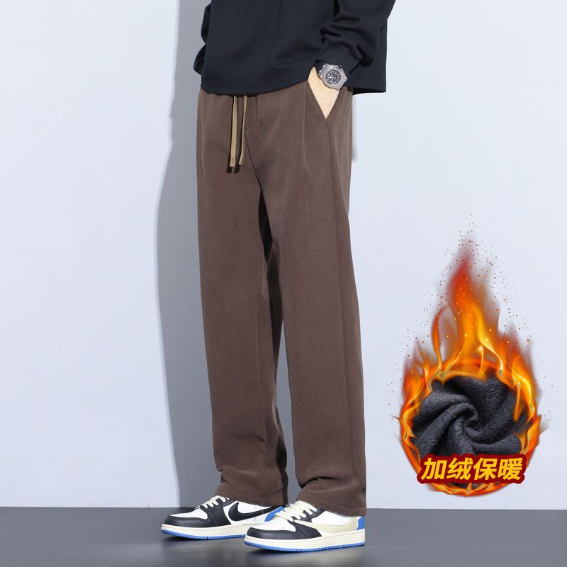 가을 신상 남성 캐주얼 팬츠 스트레이트 롱 팬츠 트렌디 패션 만능 스타일 신축성 루즈핏 기모 안감 두꺼운 바지