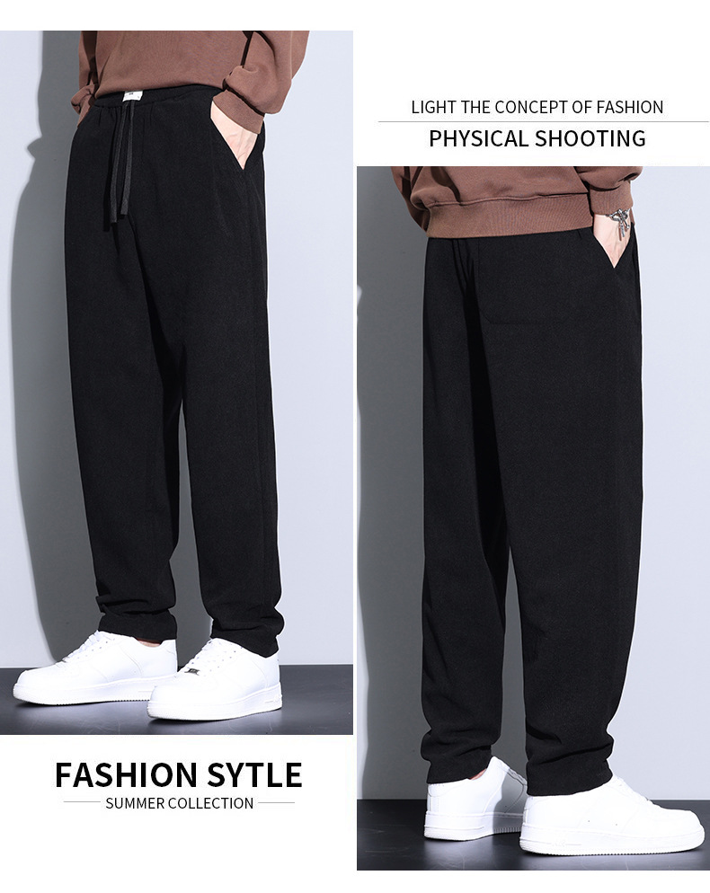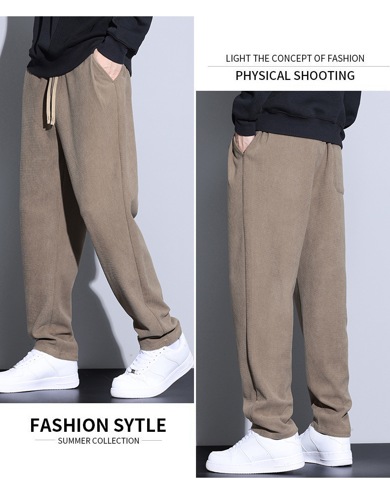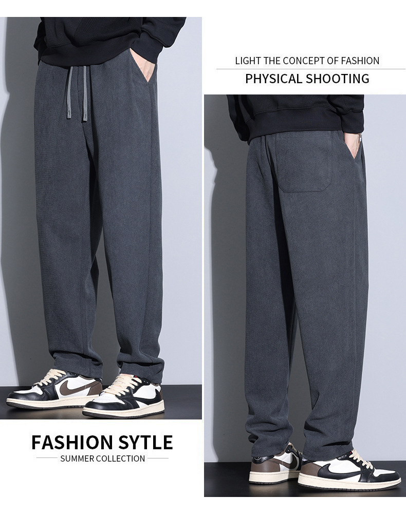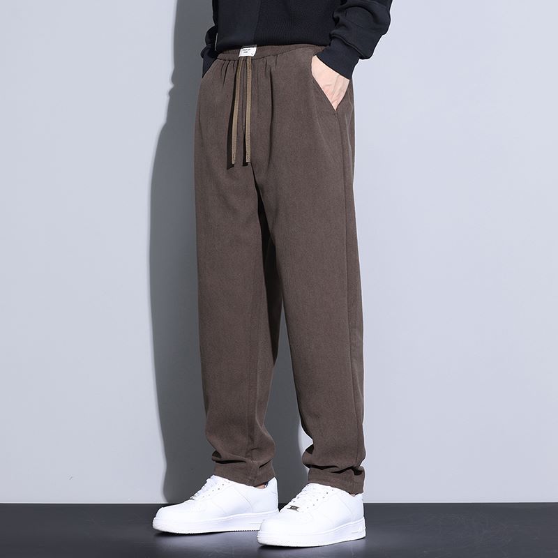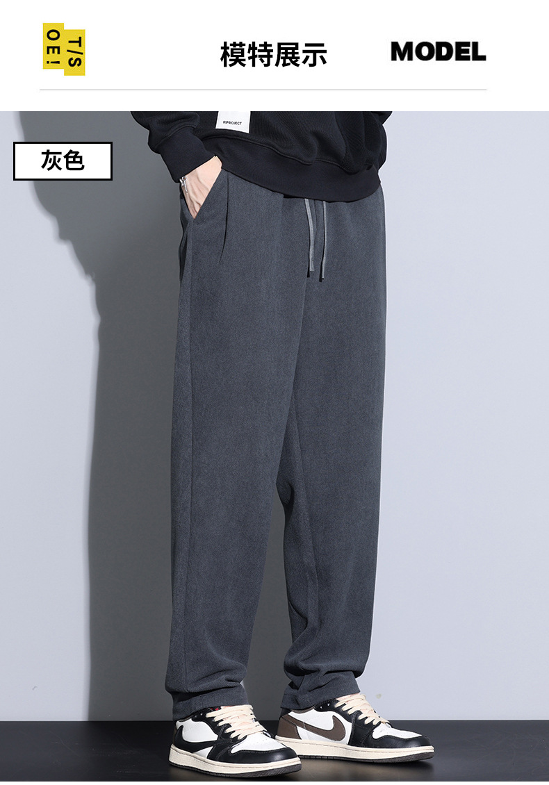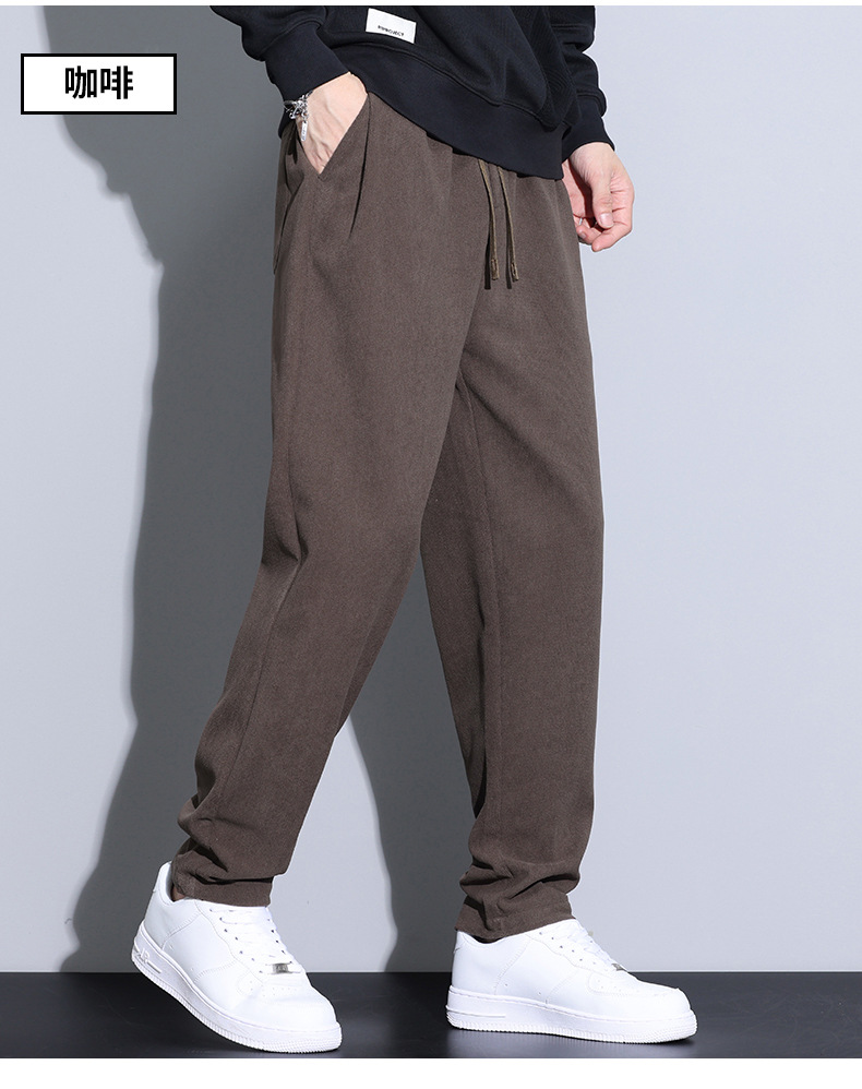 가을 신상 남성 캐주얼 팬츠 스트레이트 롱 팬츠 트렌디 패션 만능 스타일 신축성 루즈핏 기모 안감 두꺼운 바지