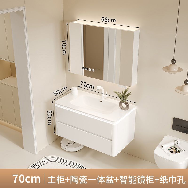 • 세라믹 일체형 세면대 + 완전 밀폐형 스마트 거울 캐비닛 - 70CM(설치 포함)