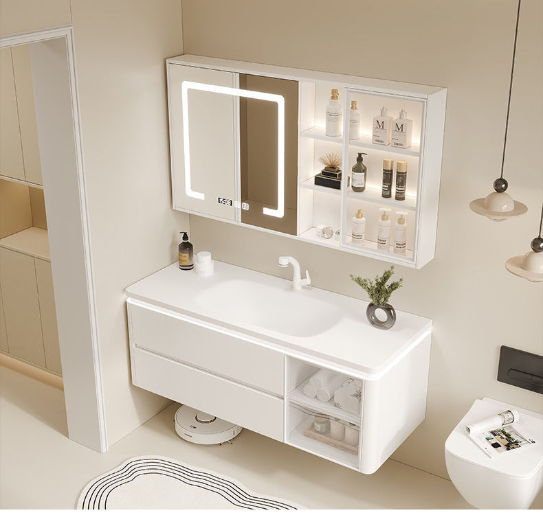 • 세라믹 일체형 세면대 + 완전 밀폐형 스마트 거울장 - 110CM (설치 포함)