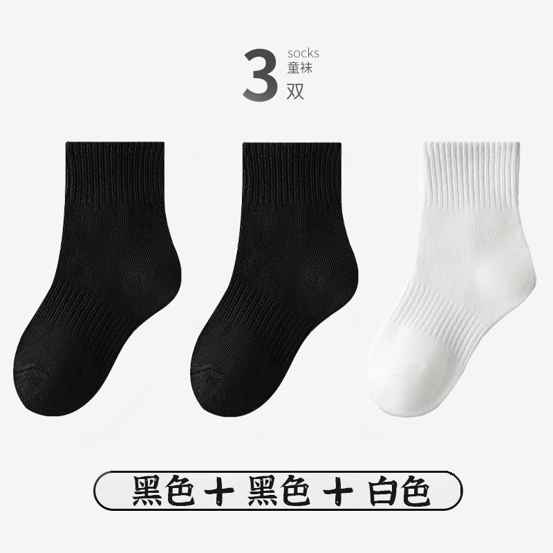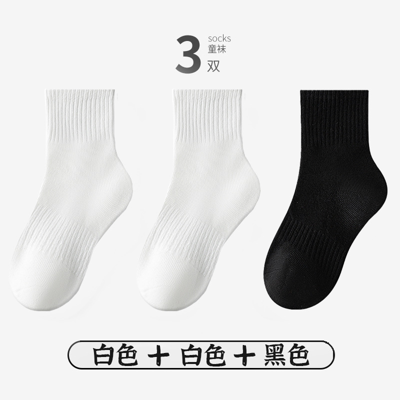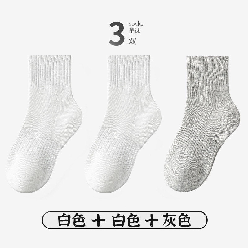 어린이 양말 가을과 겨울 소년 소녀 학생 클래식 흰색 양말 단색 면 튜브 양말 스포츠 땀 흡수성 탈취제
