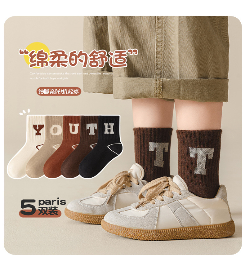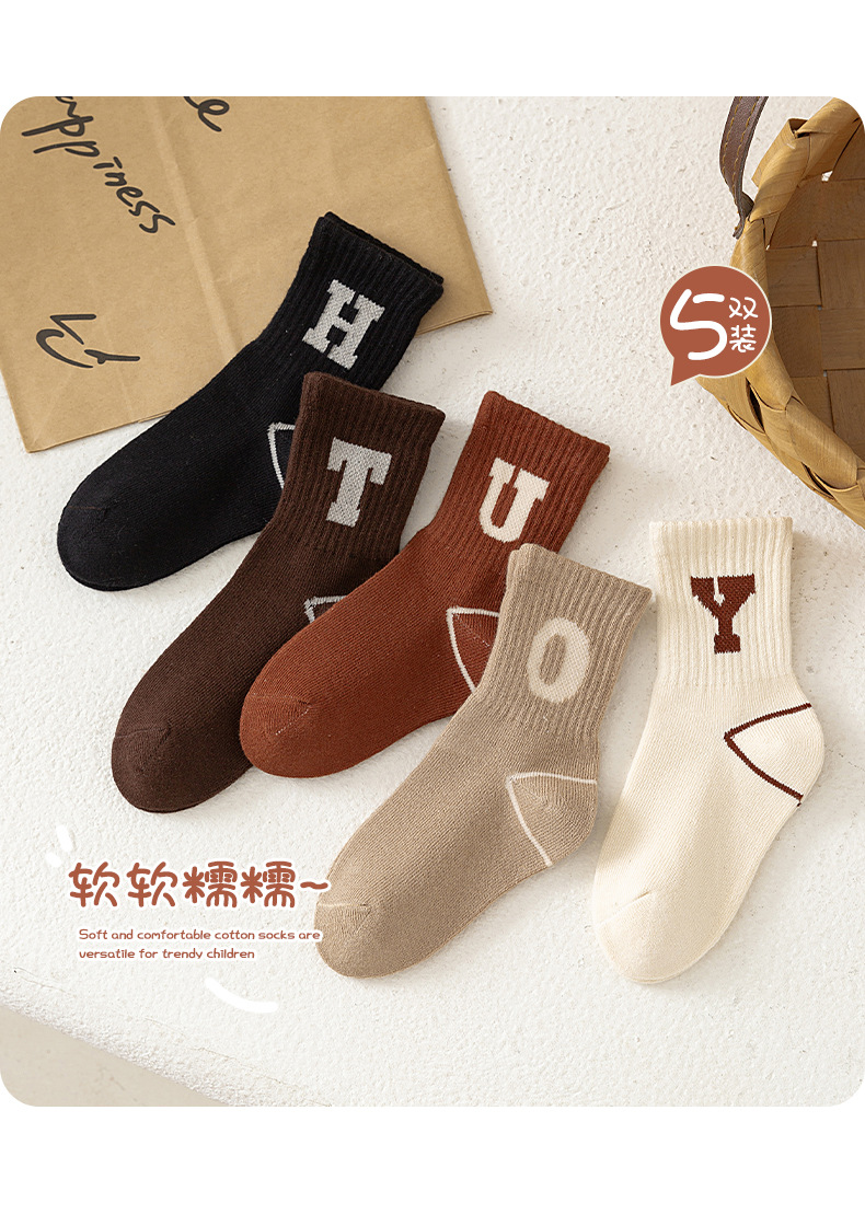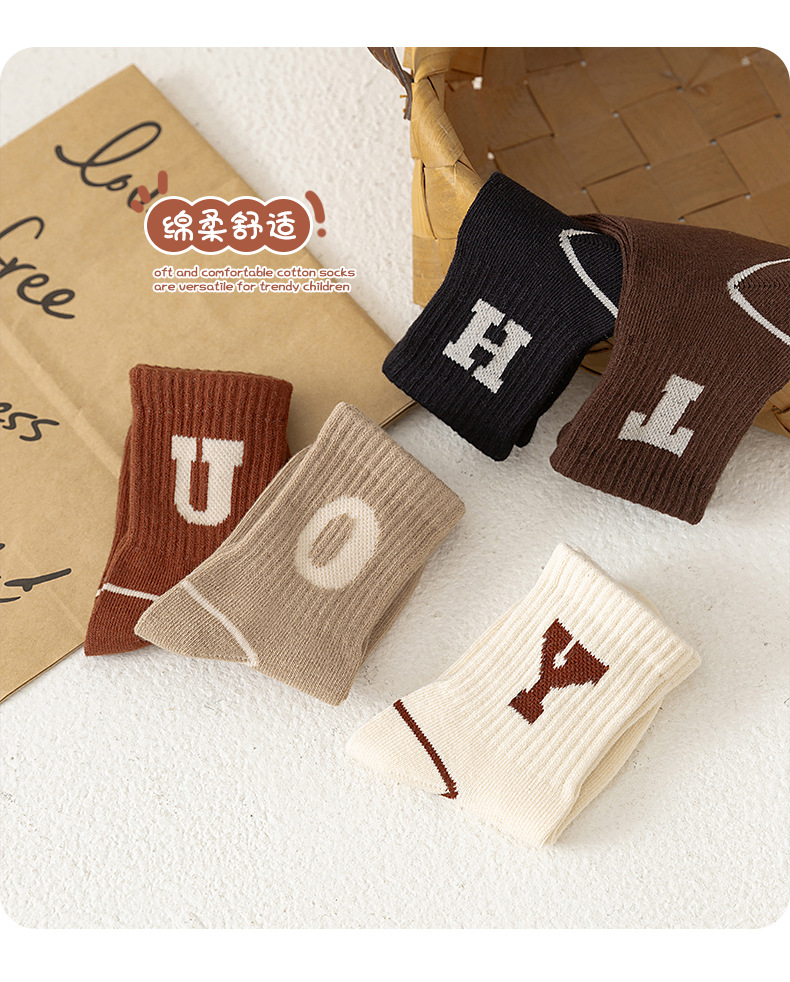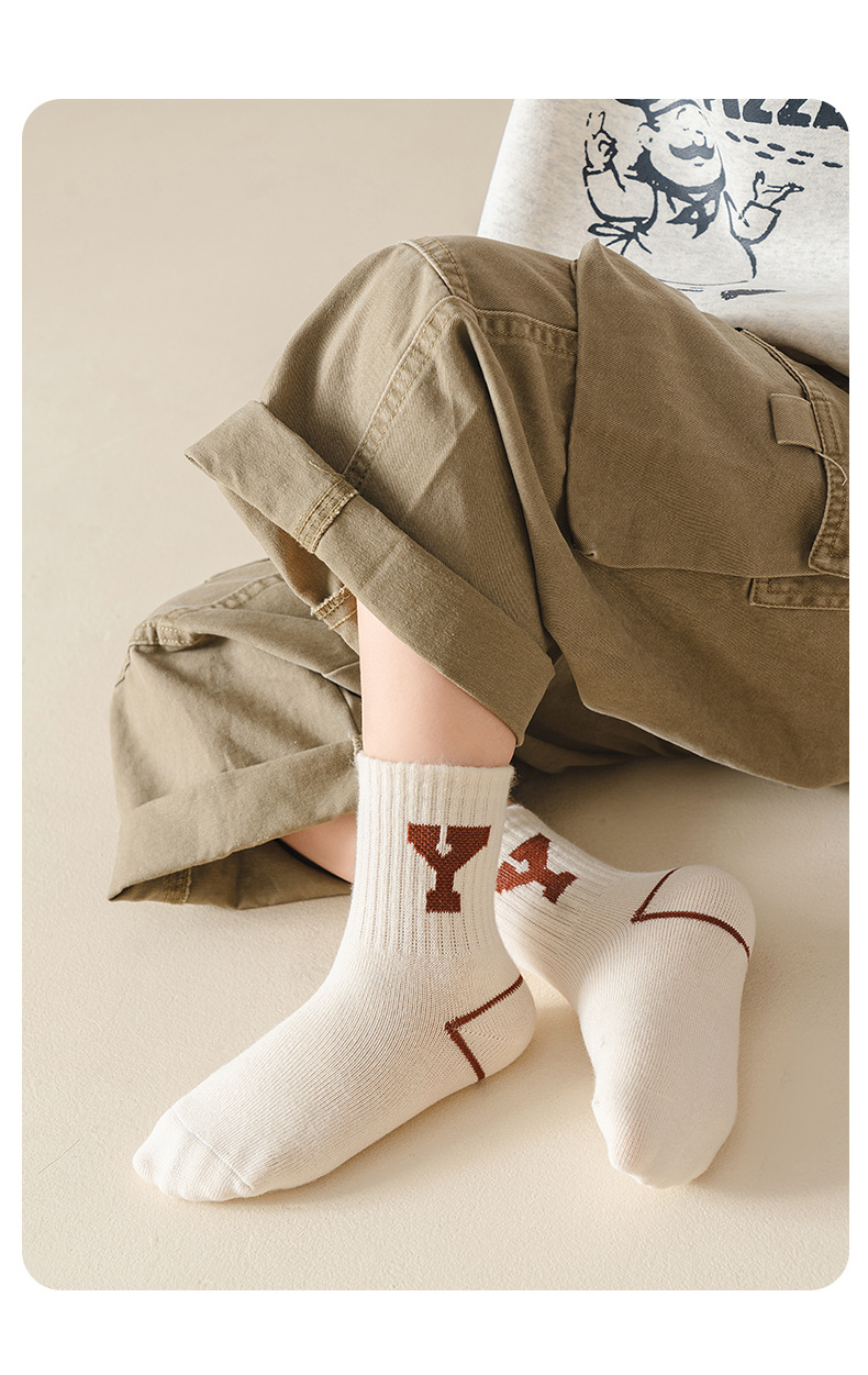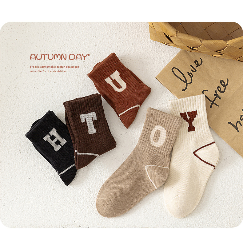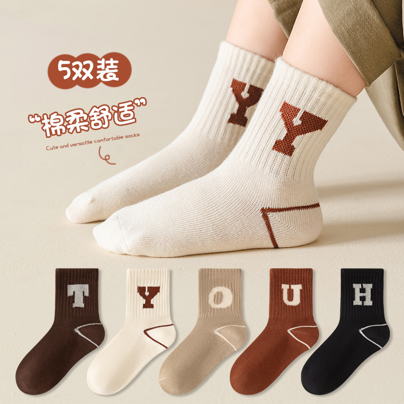 어린이 양말 소년 봄 가을 겨울 소년 학생 면화 양말 십대 여성 보물 스포츠 편지 중간 튜브 양말 유행 양말