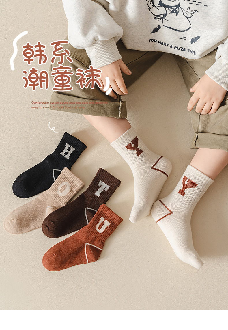어린이 양말 소년 봄 가을 겨울 소년 학생 면화 양말 십대 여성 보물 스포츠 편지 중간 튜브 양말 유행 양말스토어 가기