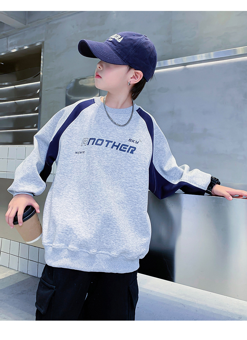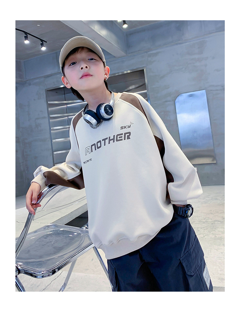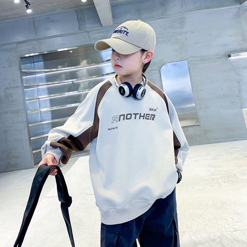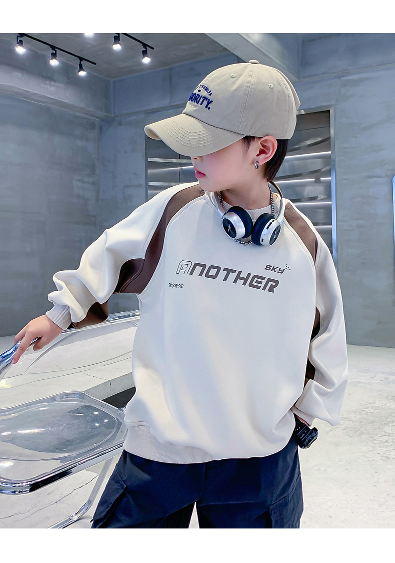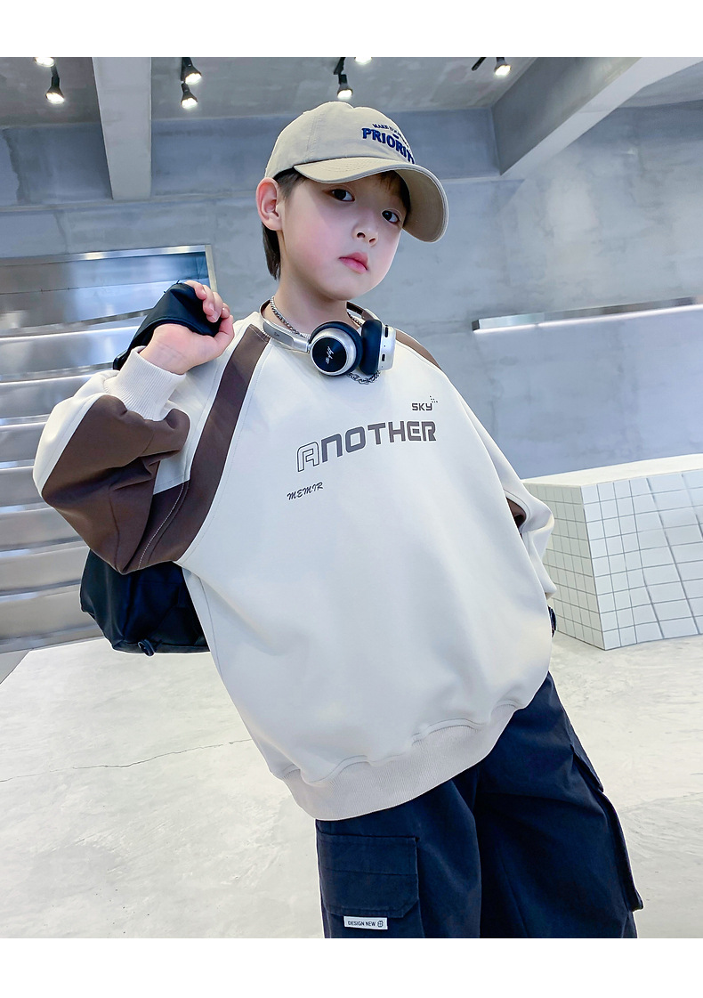 트렌디한 남아 가을옷 배색 바이커 스타일 루즈핏 스웨트셔츠 2025년 신상 아동 남아 가을 멋진 상의스토어 가기