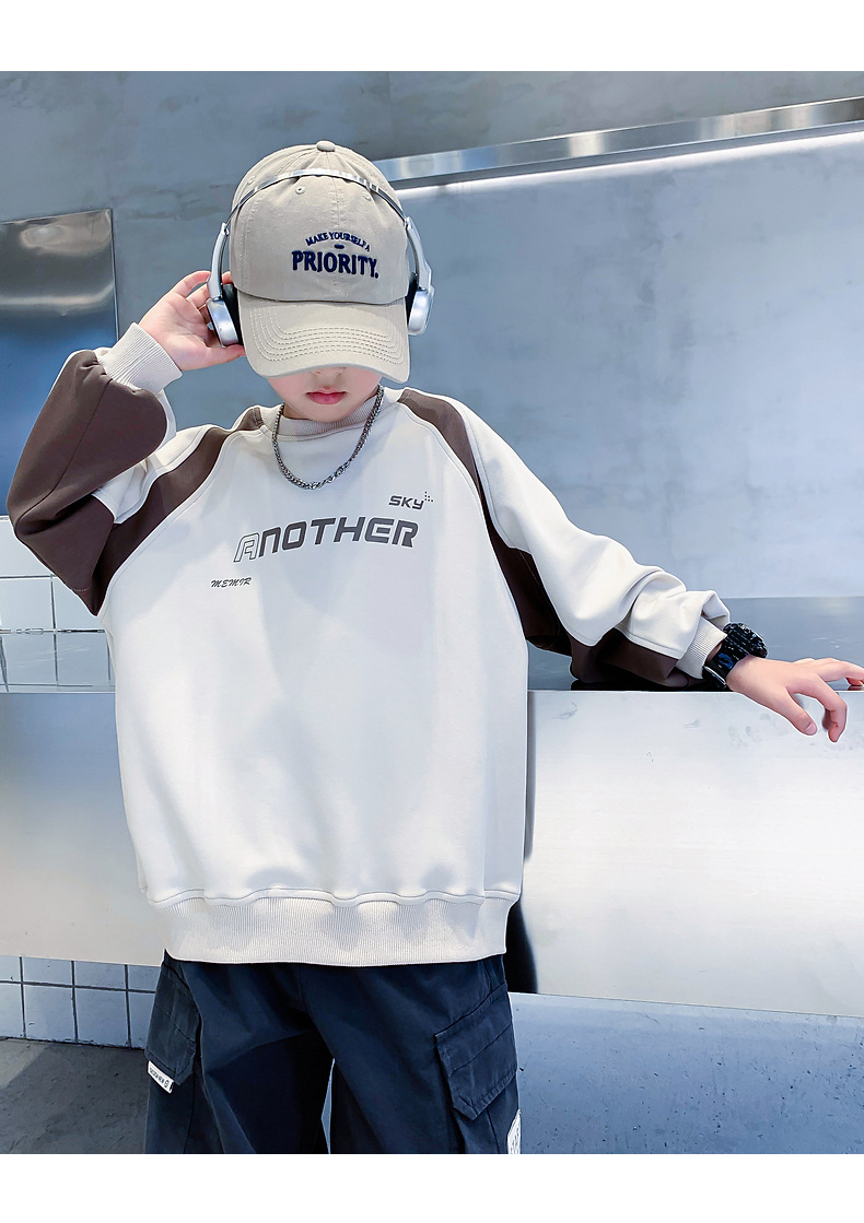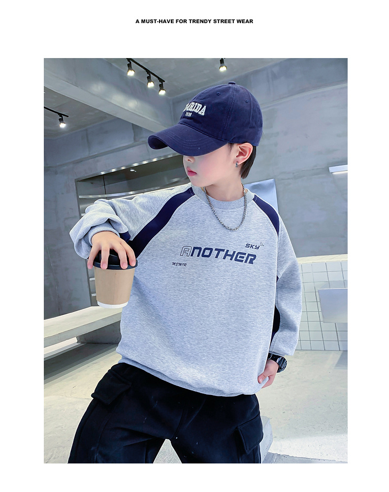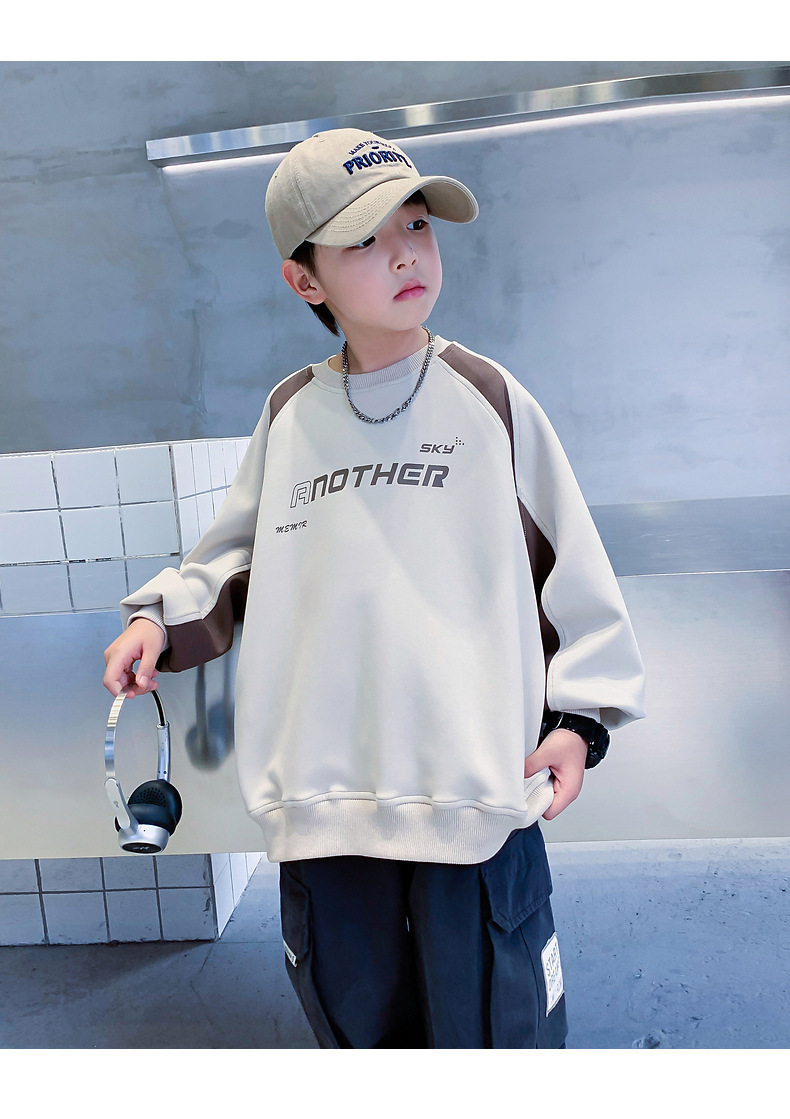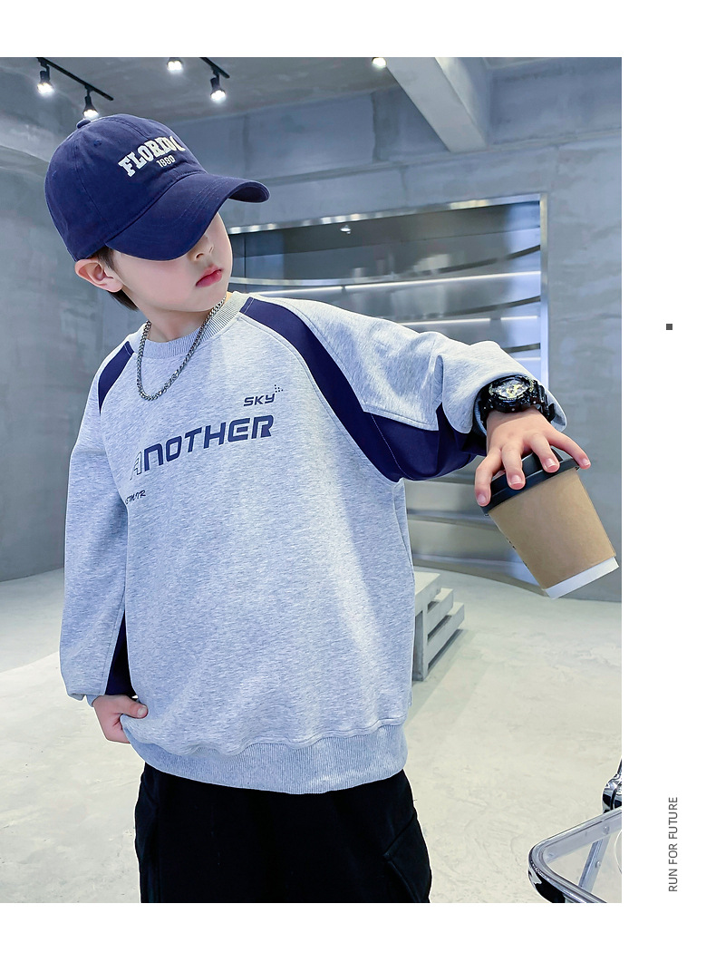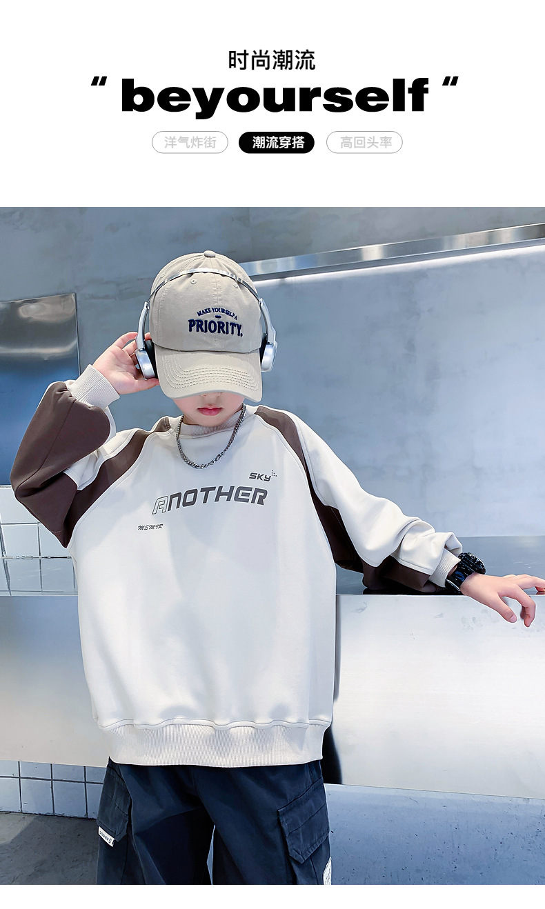 트렌디한 남아 가을옷 배색 바이커 스타일 루즈핏 스웨트셔츠 2025년 신상 아동 남아 가을 멋진 상의스토어 가기
