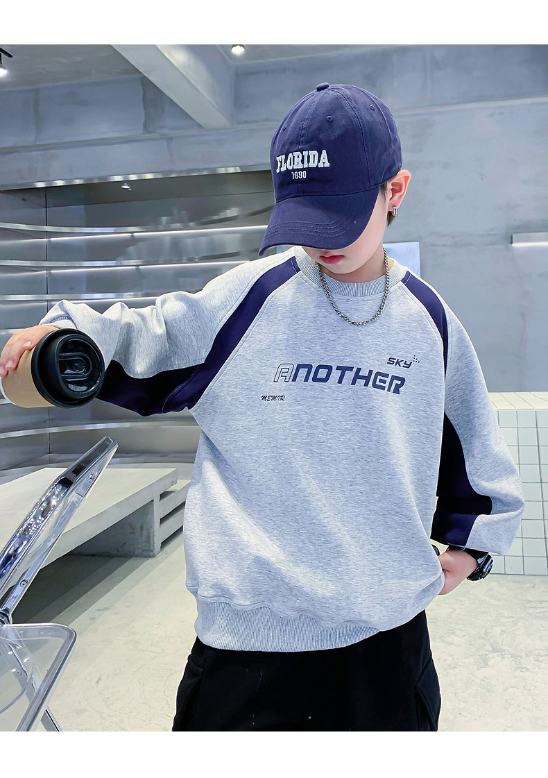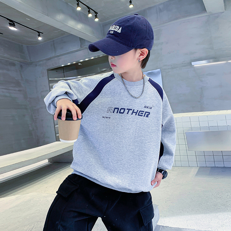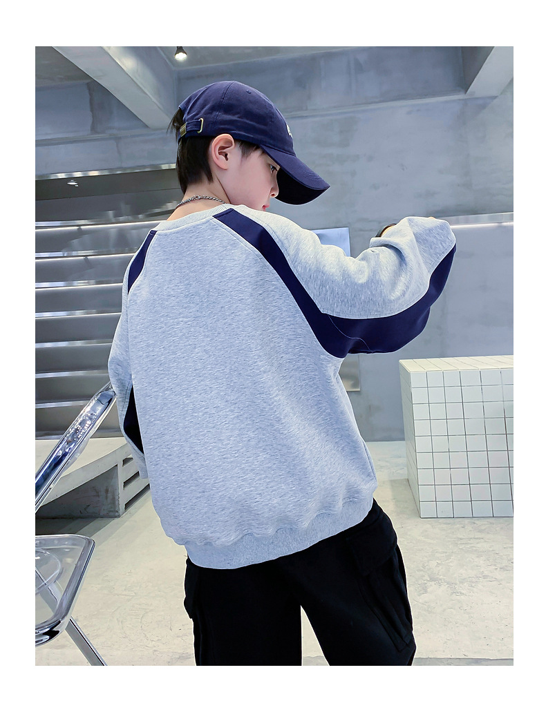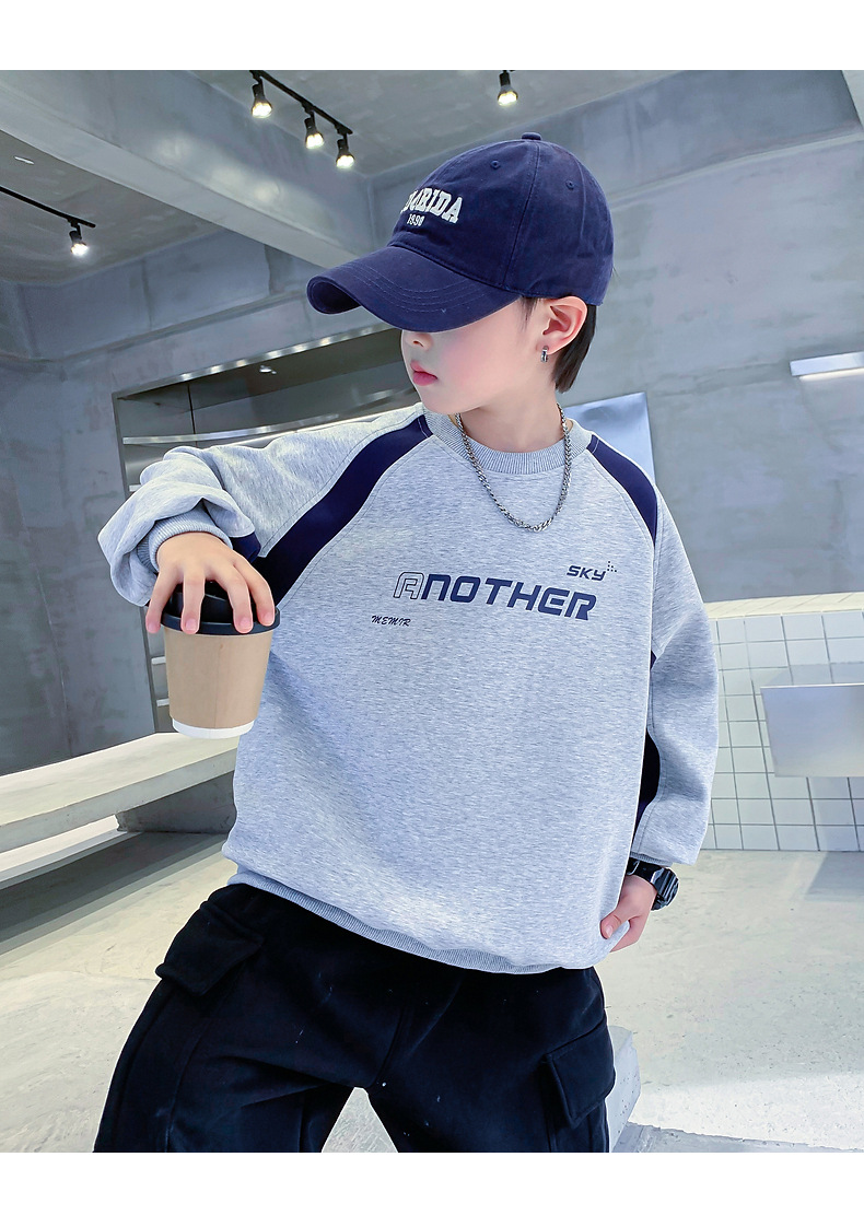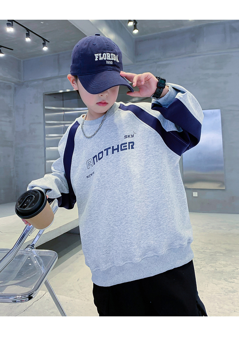 트렌디한 남아 가을옷 배색 바이커 스타일 루즈핏 스웨트셔츠 2025년 신상 아동 남아 가을 멋진 상의스토어 가기