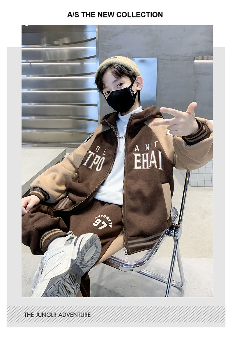 가을 및 겨울 새로운 어린이 지퍼 후드 스웨트 바지 세트 중소 소년 편지 인쇄 캐주얼 스포츠 세트스토어 가기