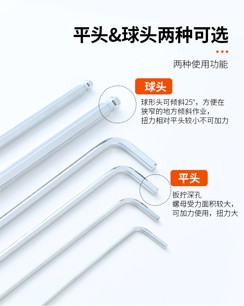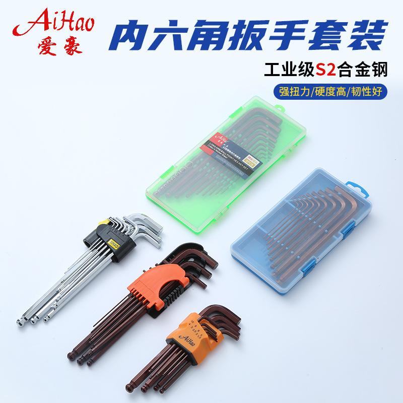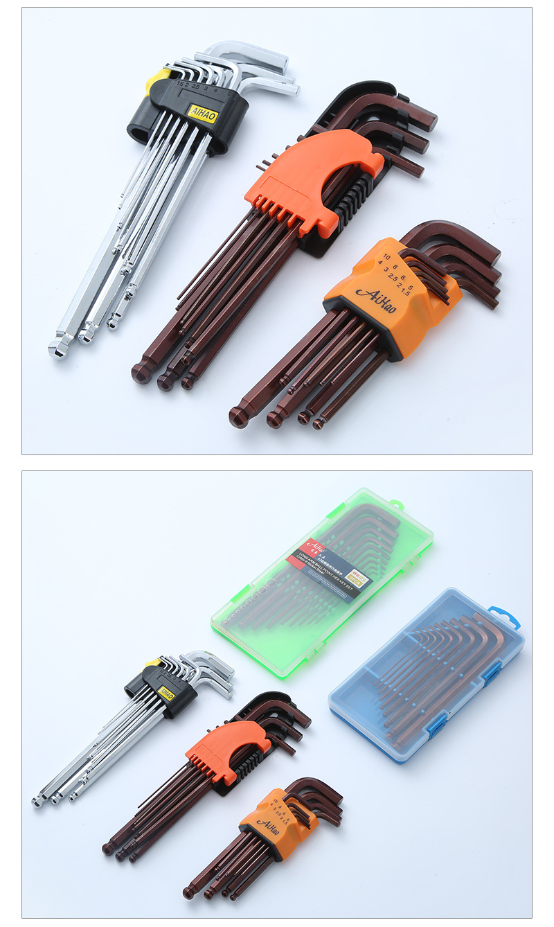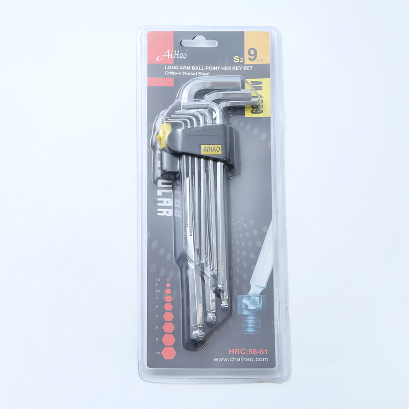 육각형 렌치 세트 연장 된 공 니켈 도금 육각형 렌치 L 형 수동 렌치 내부 육각형 렌치 9 피스 세트