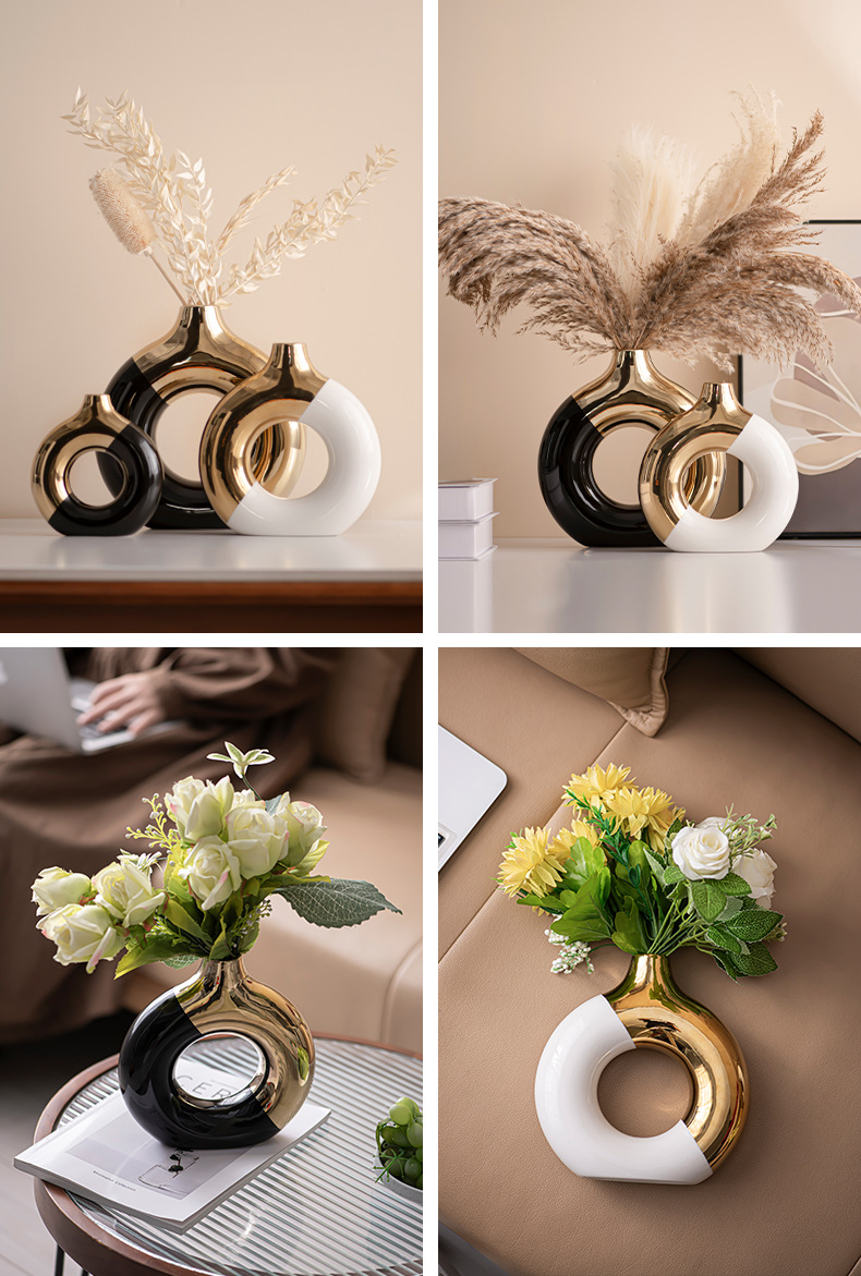 꽃병 세라믹 꽃병 입장 럭셔리 황금 꽃병 스타일 높은 색상 가치 부드러운 장식 용품 장식품 예술적 식탁