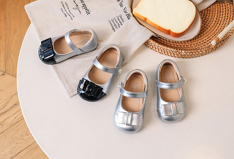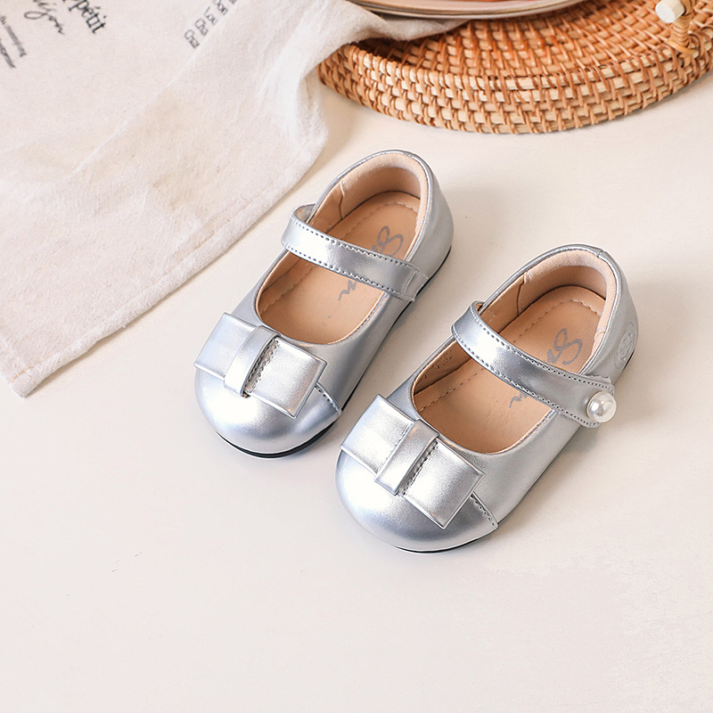 2024 년 봄과 가을 어린 소녀 실버 공주 신발 소녀 가죽 신발 샤넬 스타일 싱글 레이어 신발 여성용 베이비 신발 부드러운 신발스토어 가기