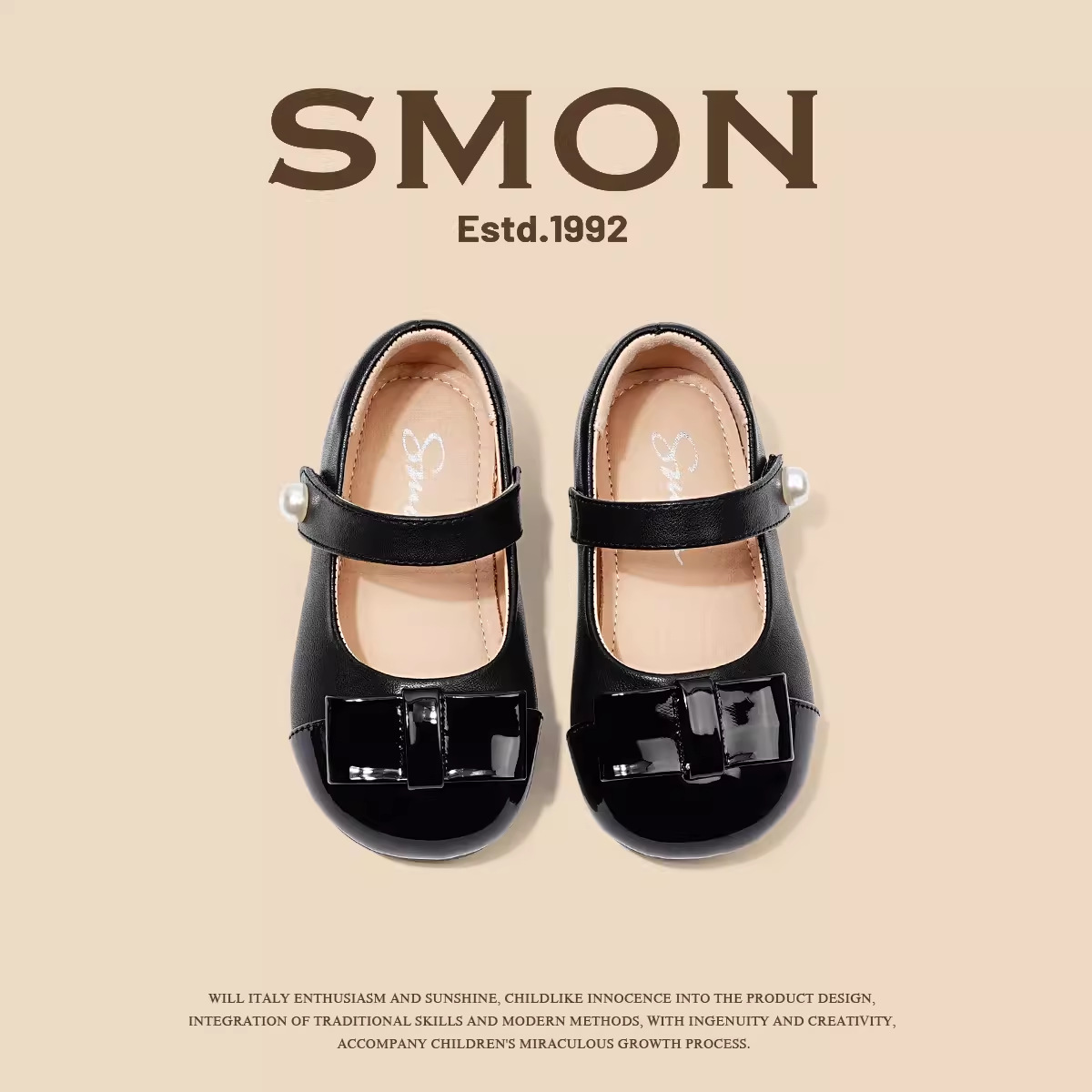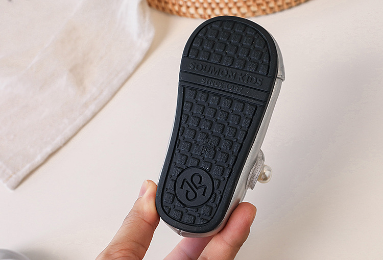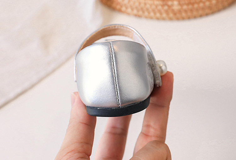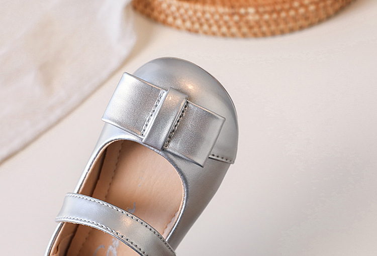 2024 년 봄과 가을 어린 소녀 실버 공주 신발 소녀 가죽 신발 샤넬 스타일 싱글 레이어 신발 여성용 베이비 신발 부드러운 신발