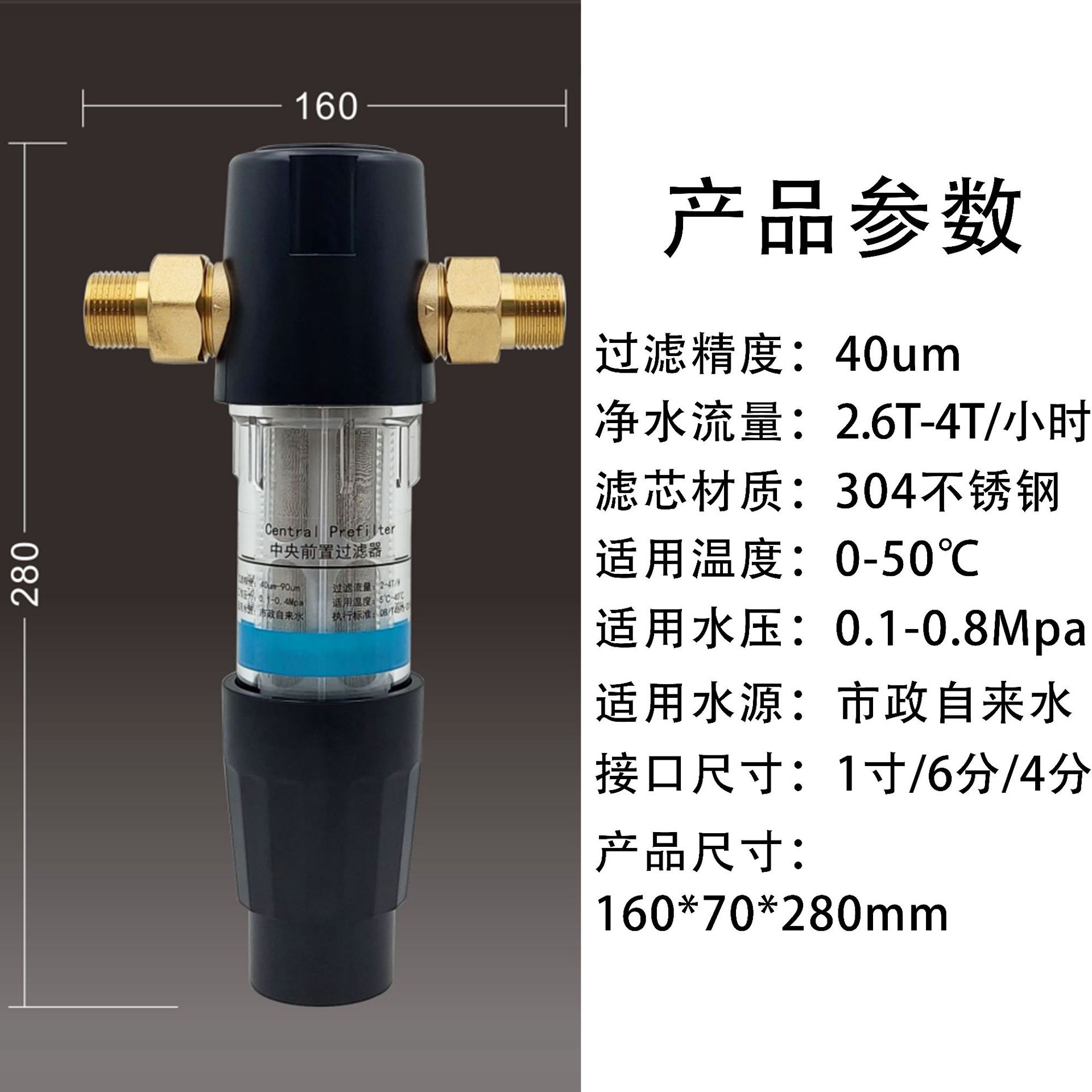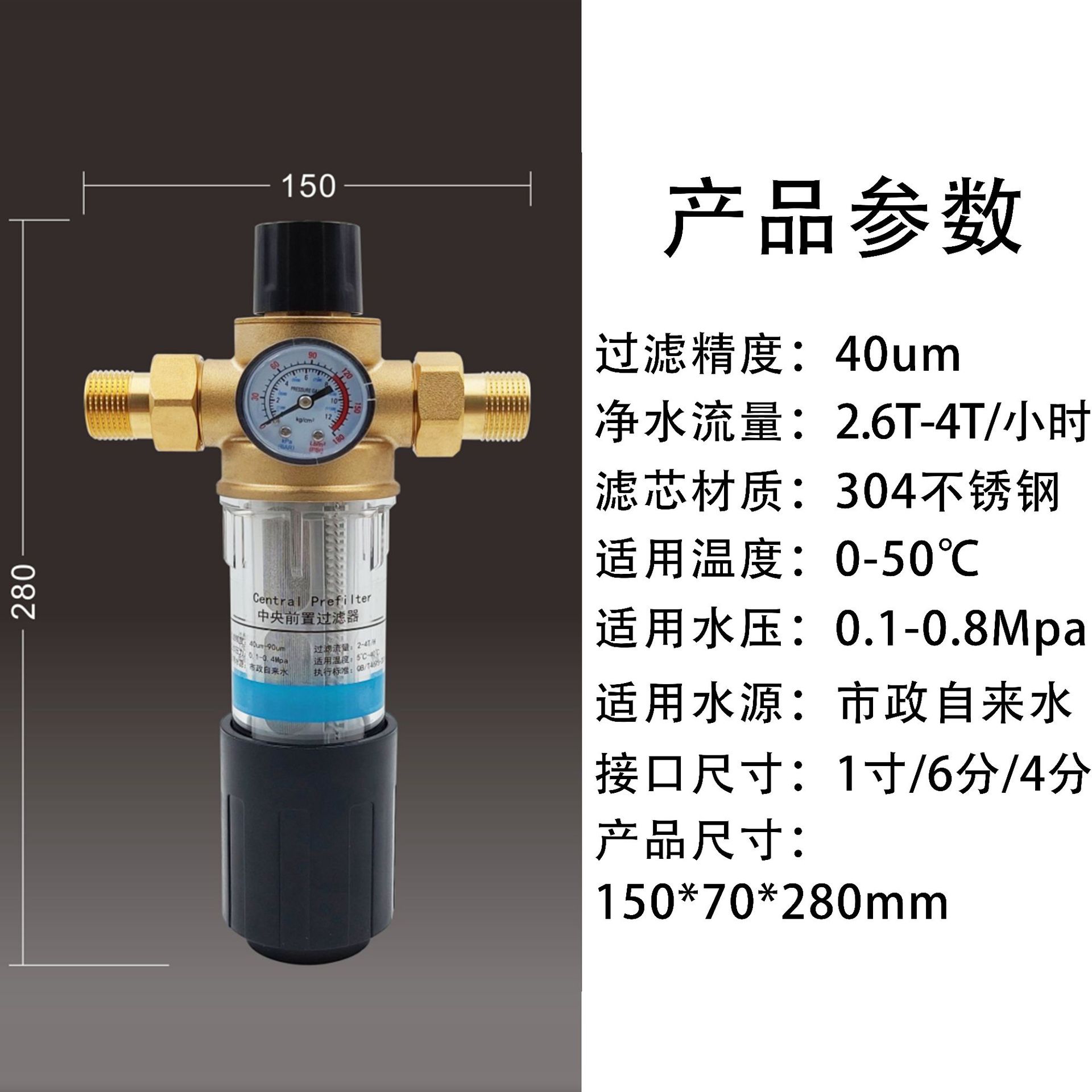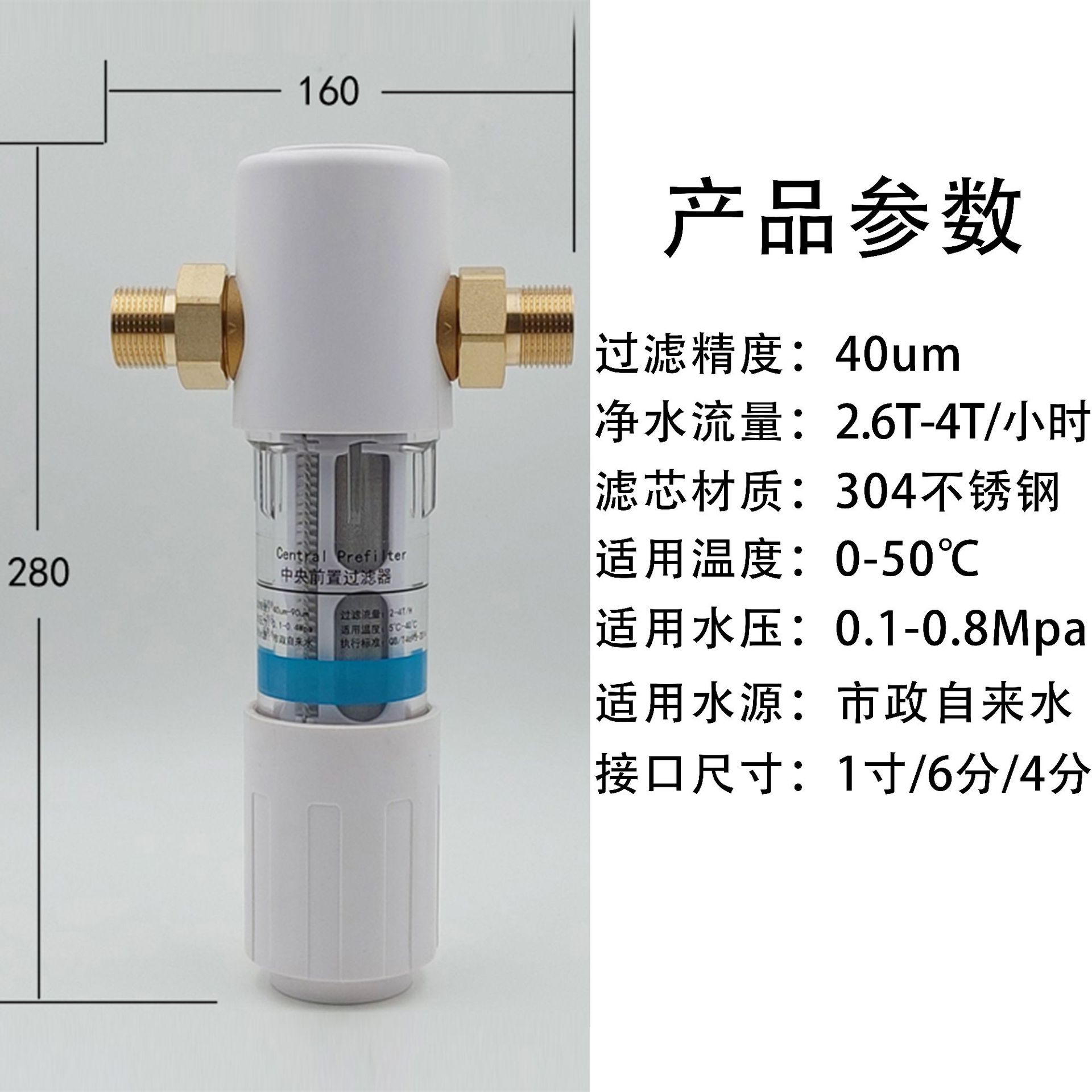 큰 흐름 사전 필터 역류 가정용 전체 집 수돗물 중앙 파이프 정수기 순수 구리 필터
