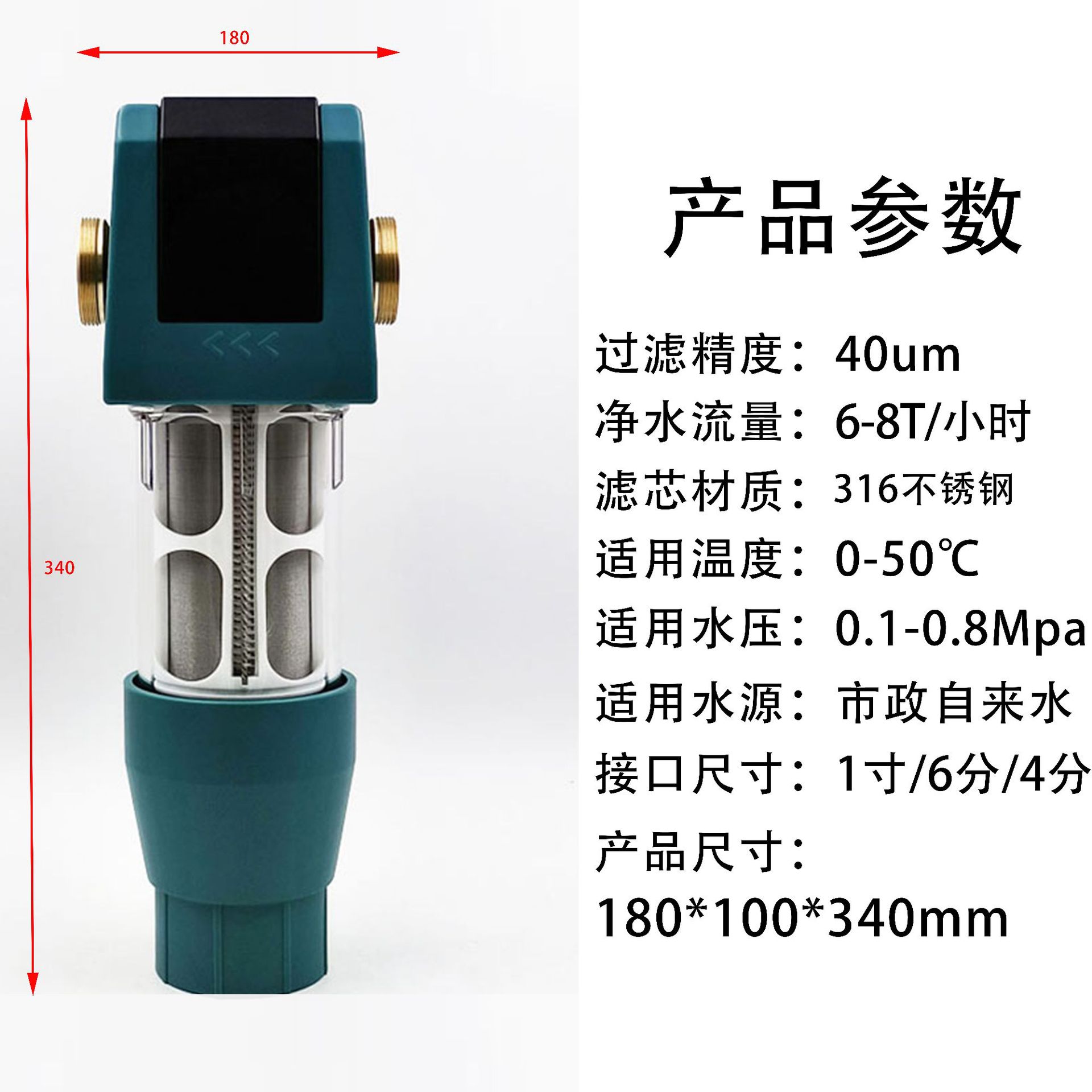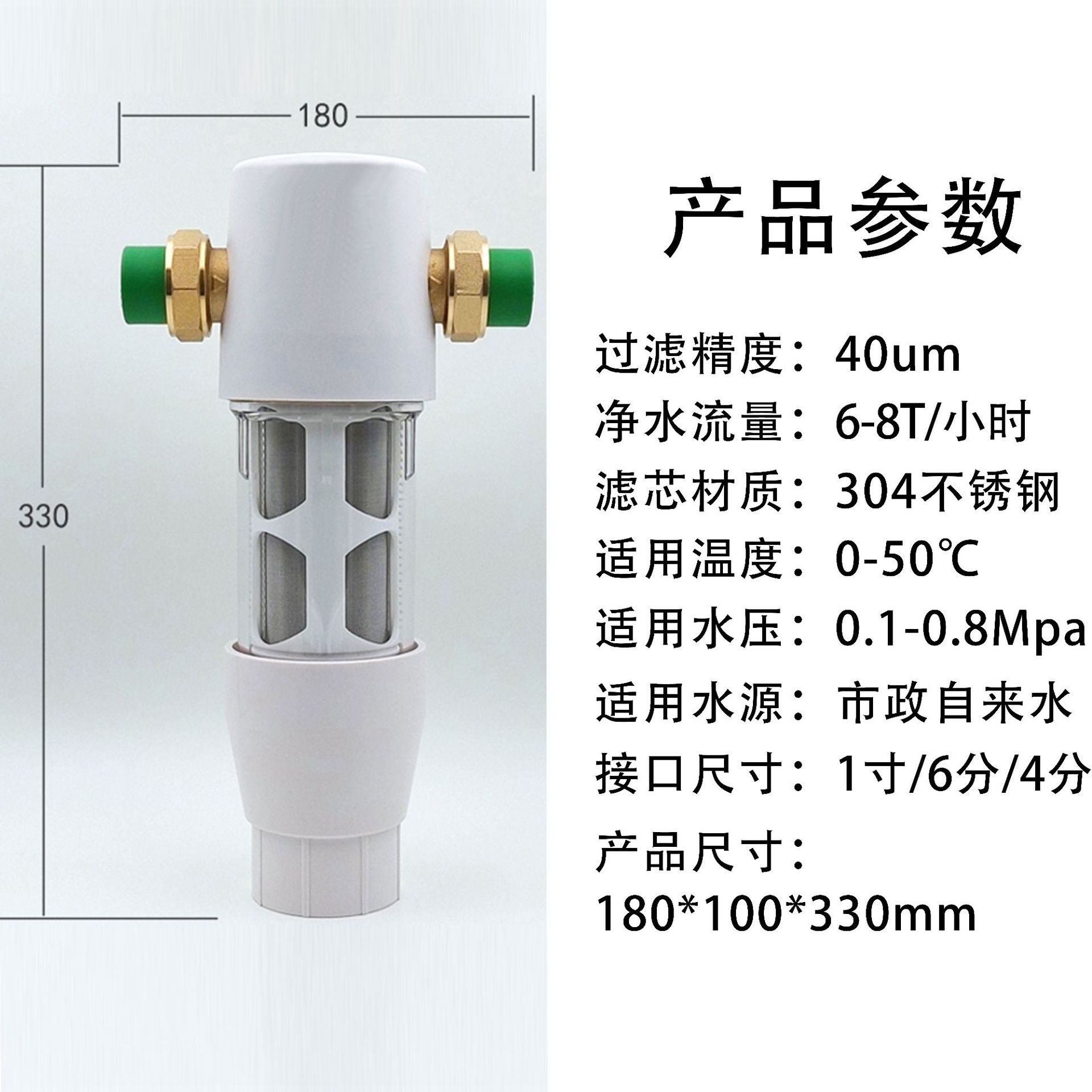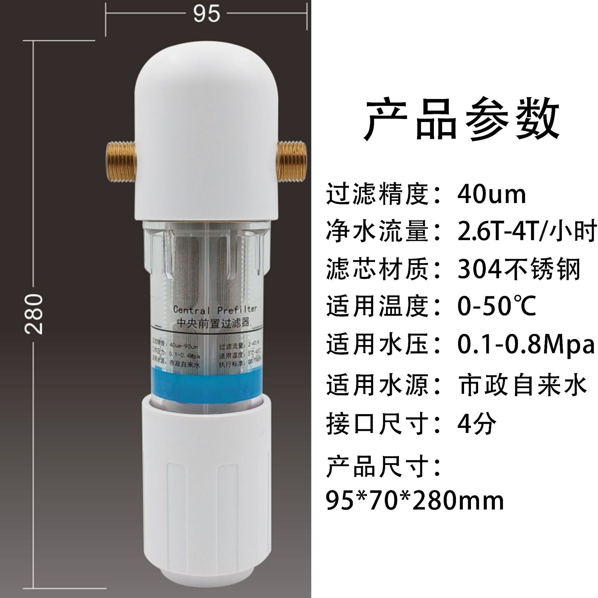 큰 흐름 사전 필터 역류 가정용 전체 집 수돗물 중앙 파이프 정수기 순수 구리 필터
