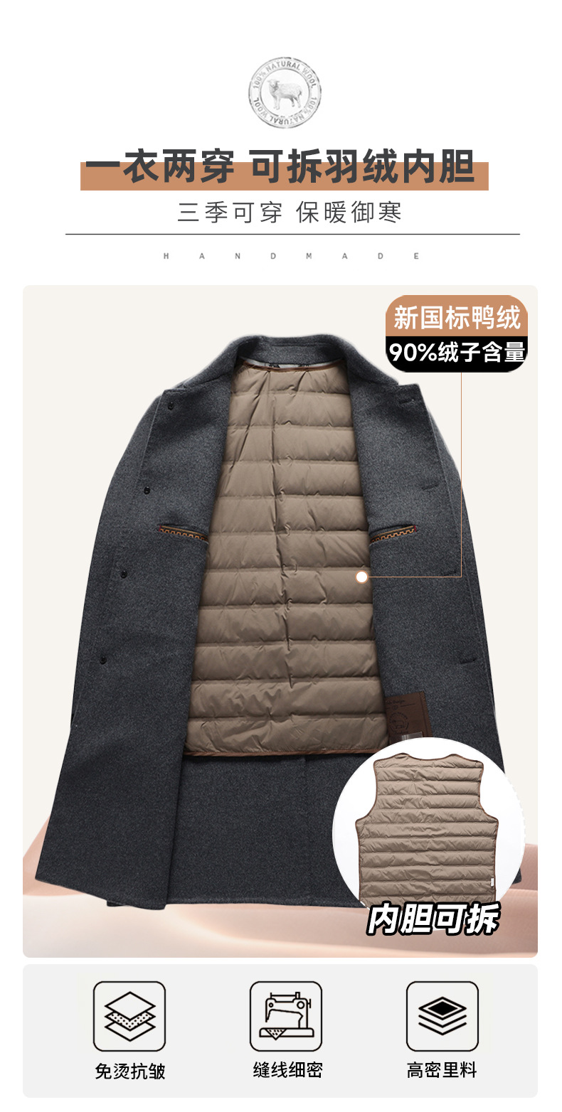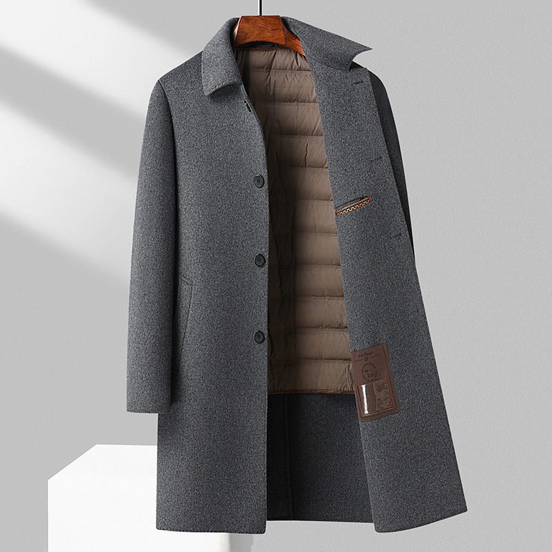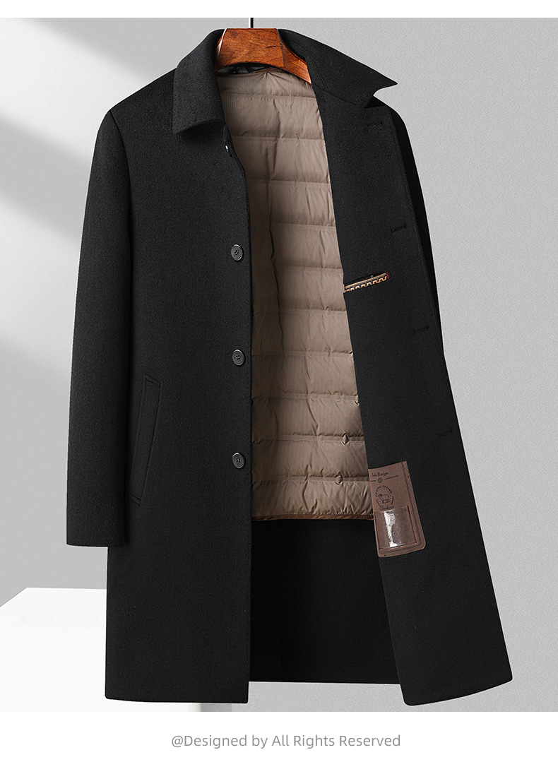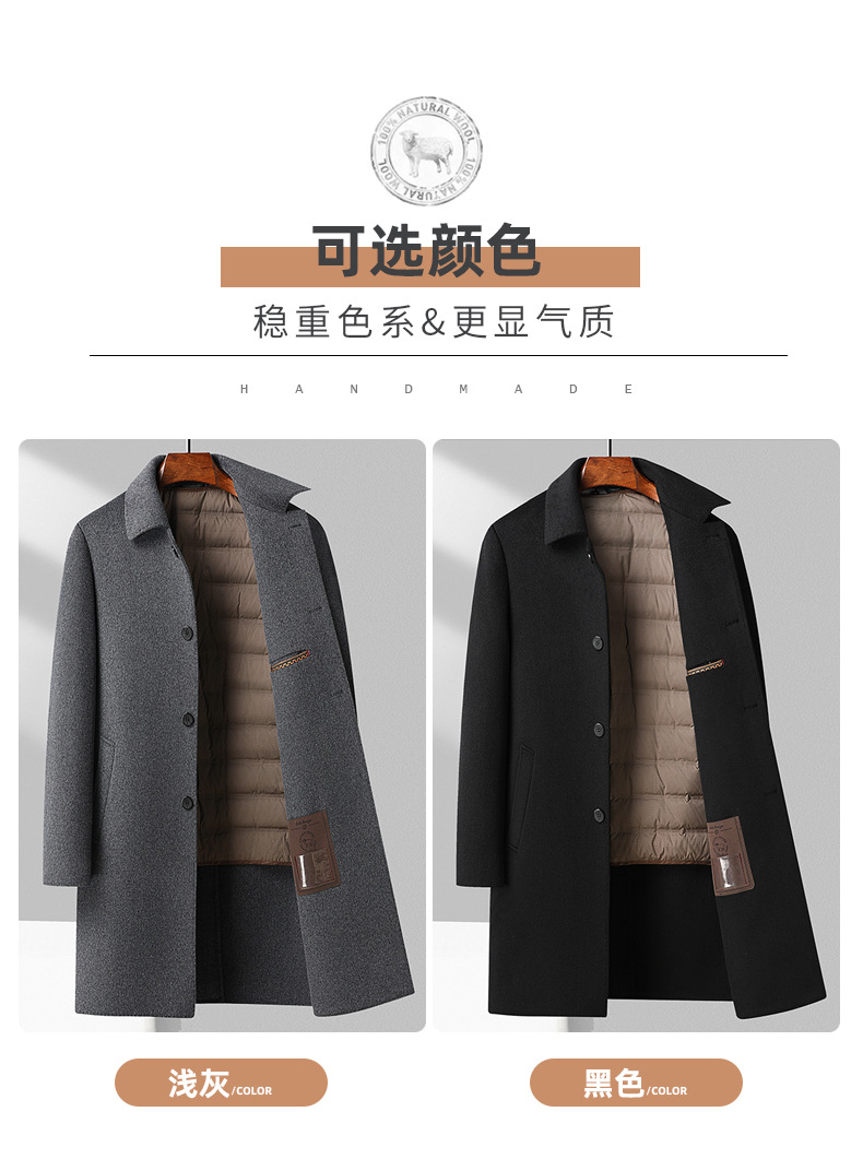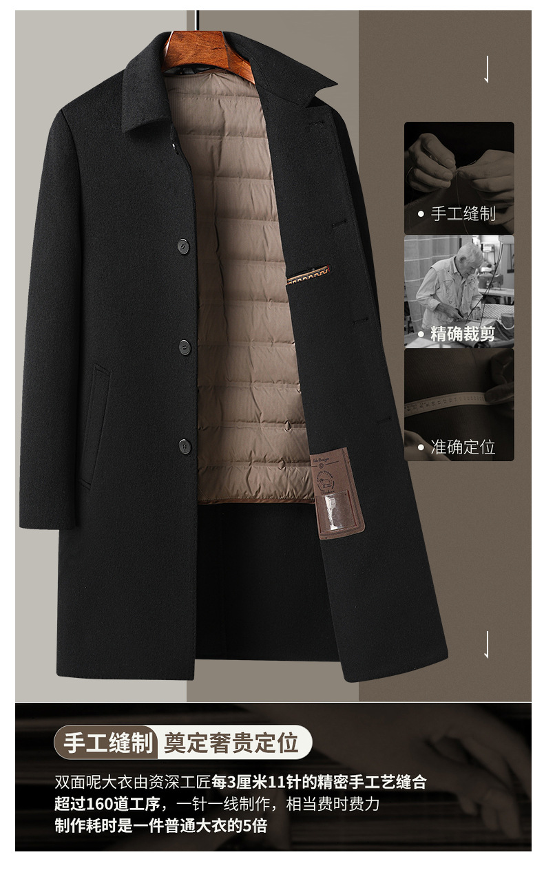 2025 가을 겨울 신상 수제 울 코트 남성용 롱 다운 안감 양면 울 코트 자켓