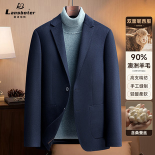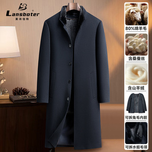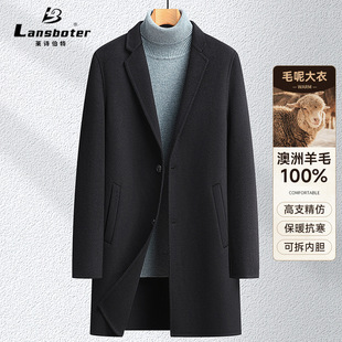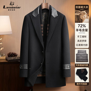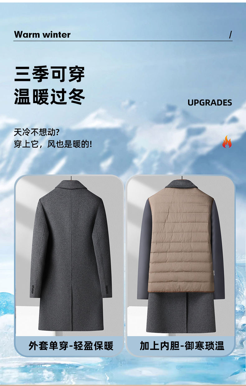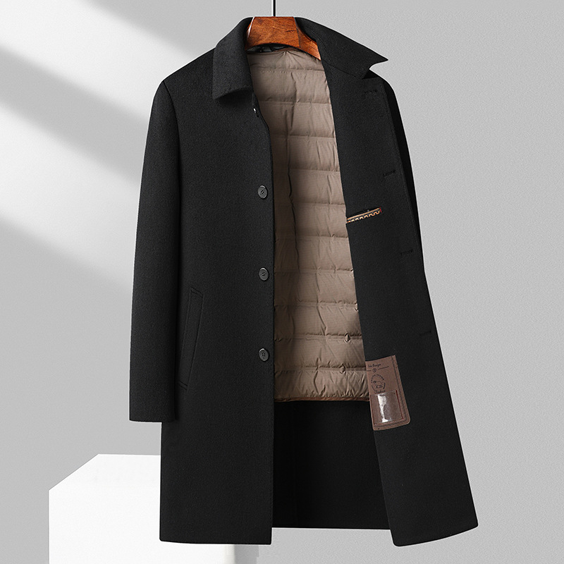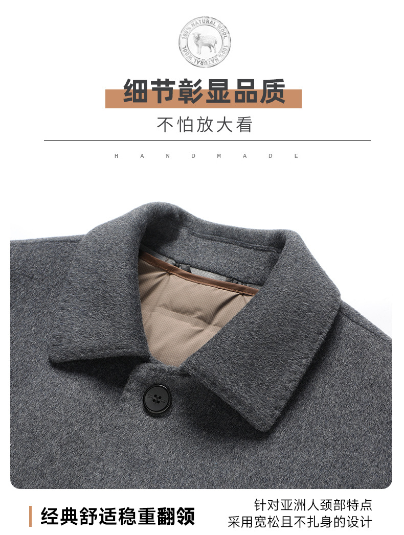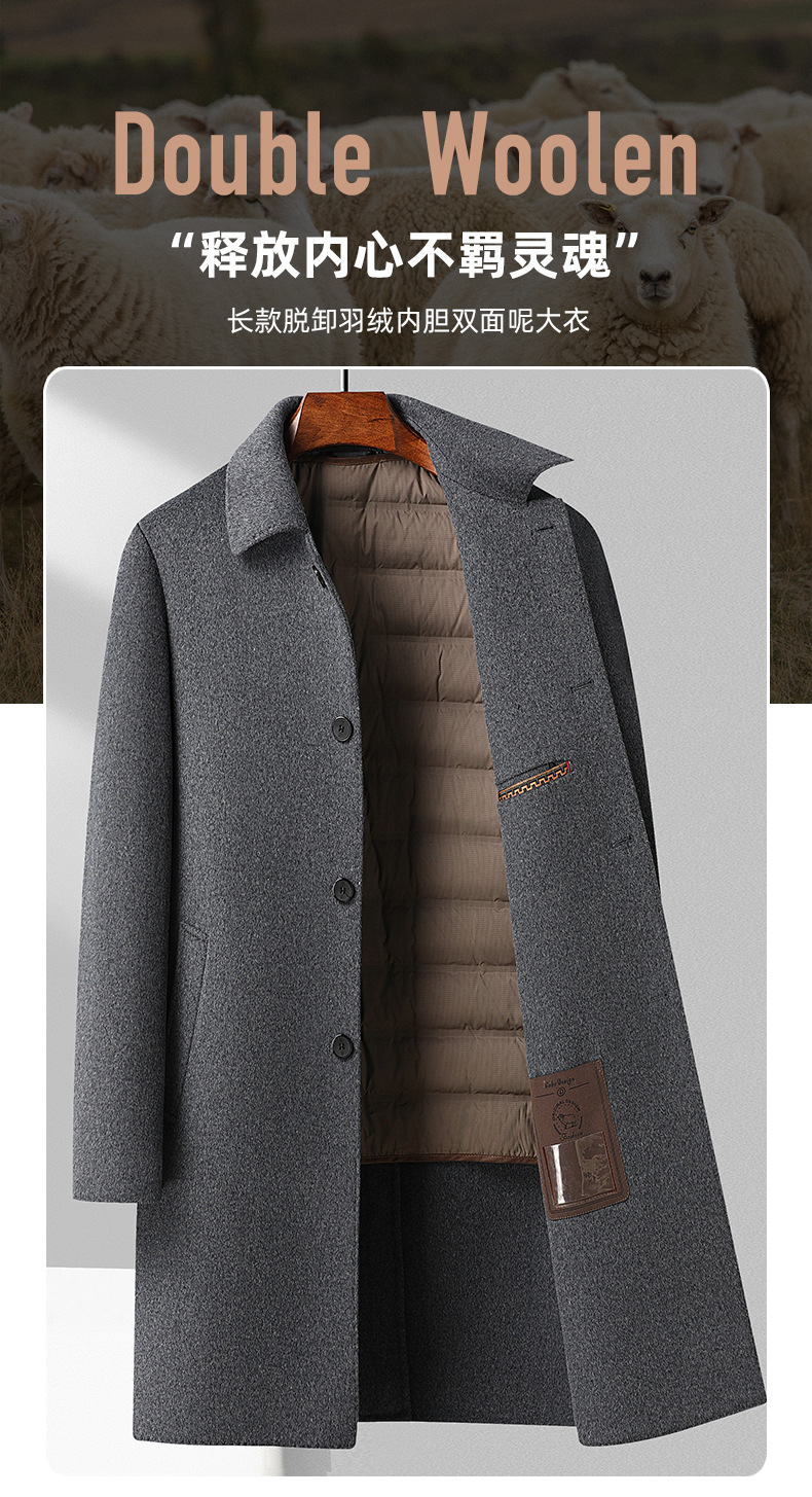 2025 가을 겨울 신상 수제 울 코트 남성용 롱 다운 안감 양면 울 코트 자켓