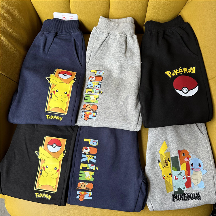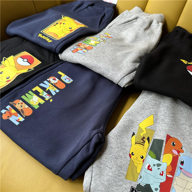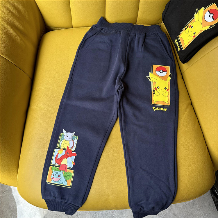 日单外贸秋季新款皮卡丘系列童装毛圈休闲长裤
