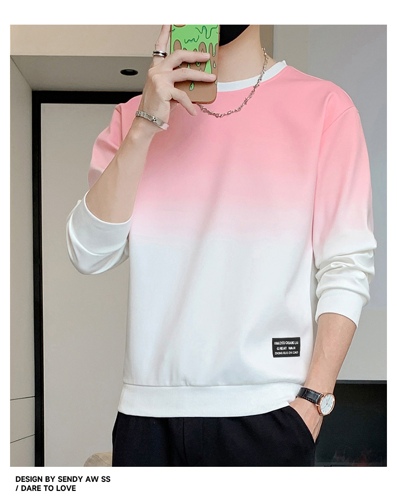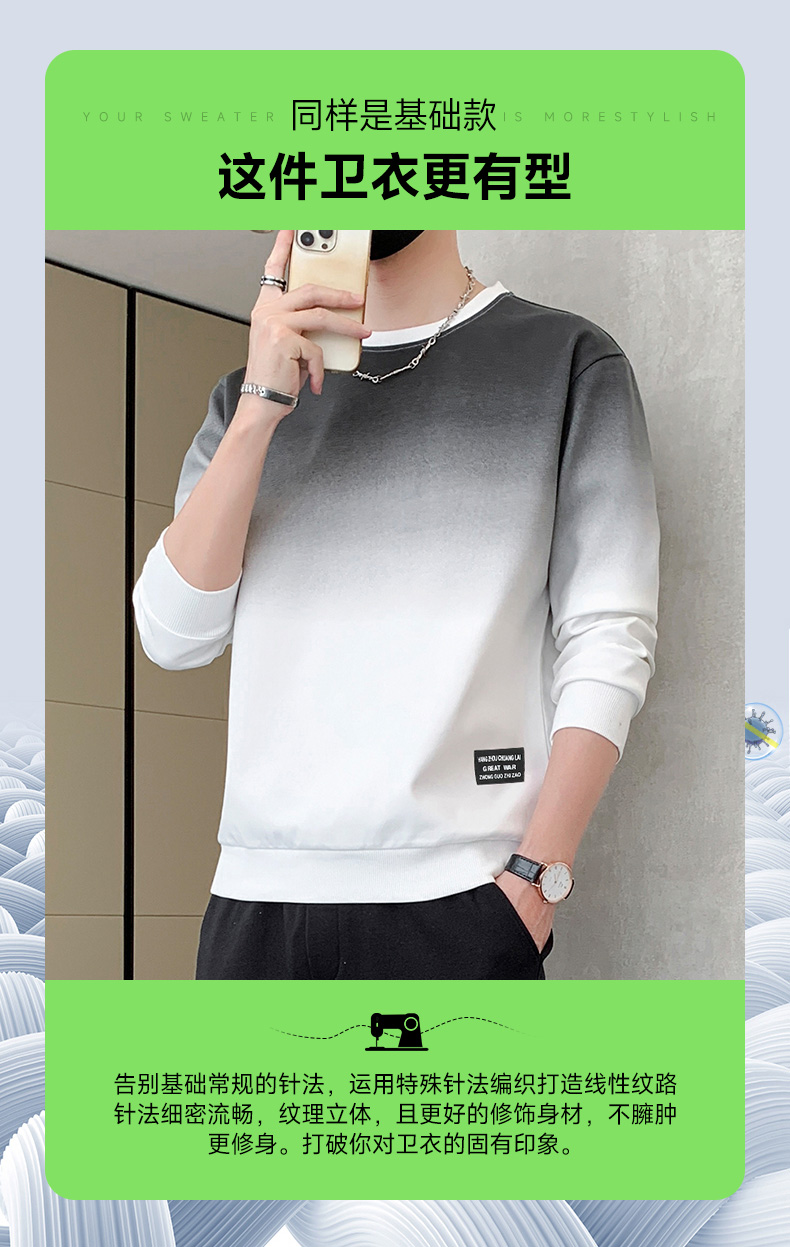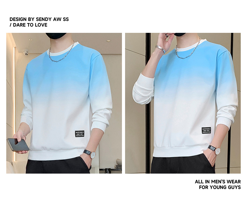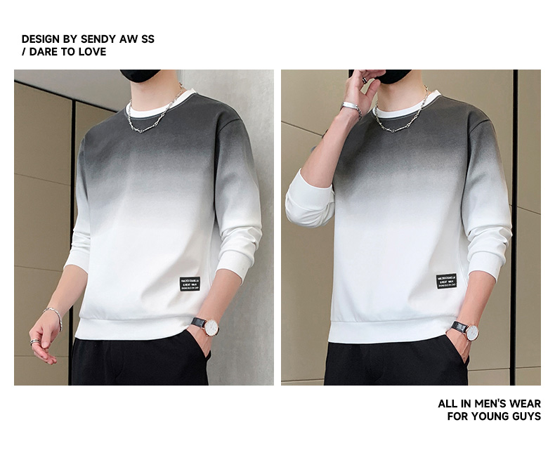 그라디언트 2024 새로운 라운드 넥 스웨터 남자의 봄과 가을 유행 브랜드 무취 내베이스 셔츠 캐주얼 탑 옷스토어 가기