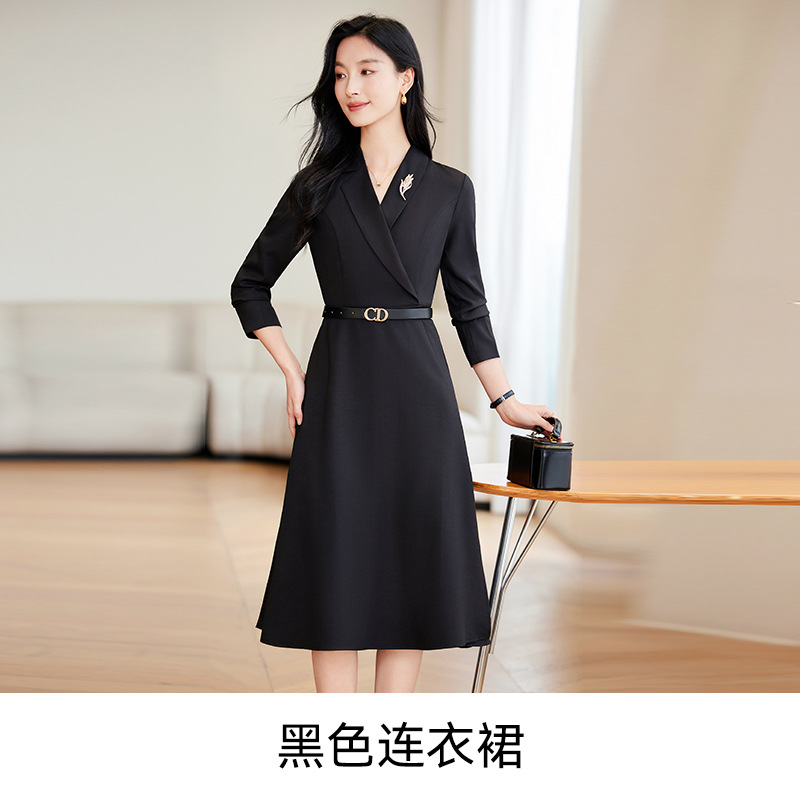 2024 새로운 세트 칼라 원피스 여성의 긴 소매 허리 기질 전문 원피스 작업복 슬림 6036