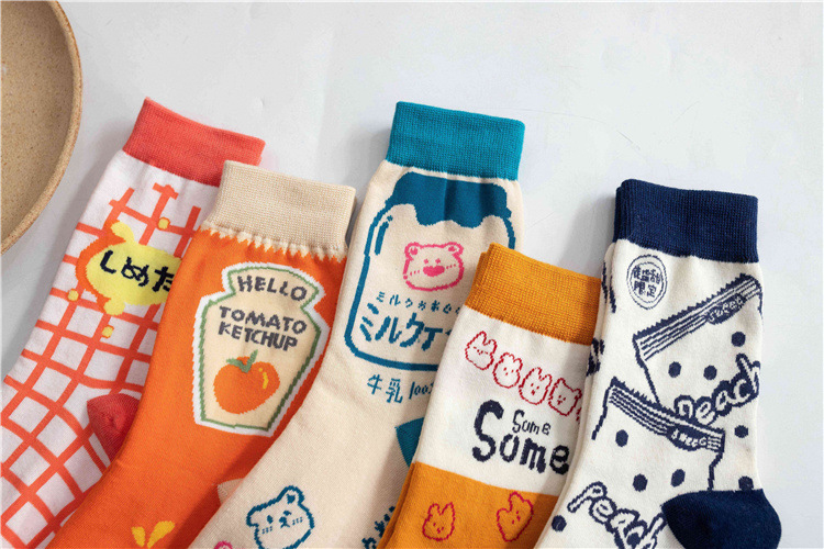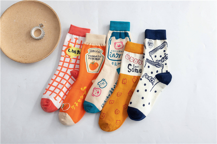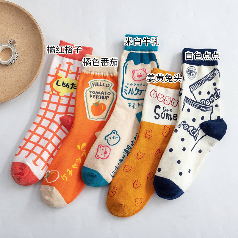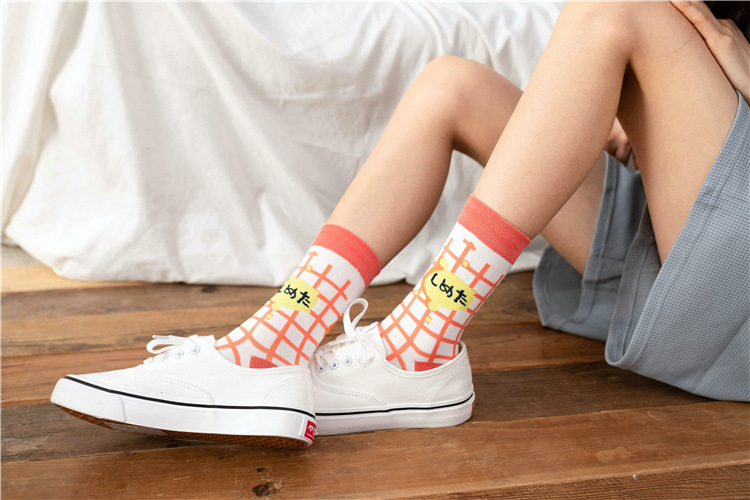 여성 봄 가을 만화 격자 무늬 거리 귀여운 스타킹 일본 대학 스타일 양말스토어 가기