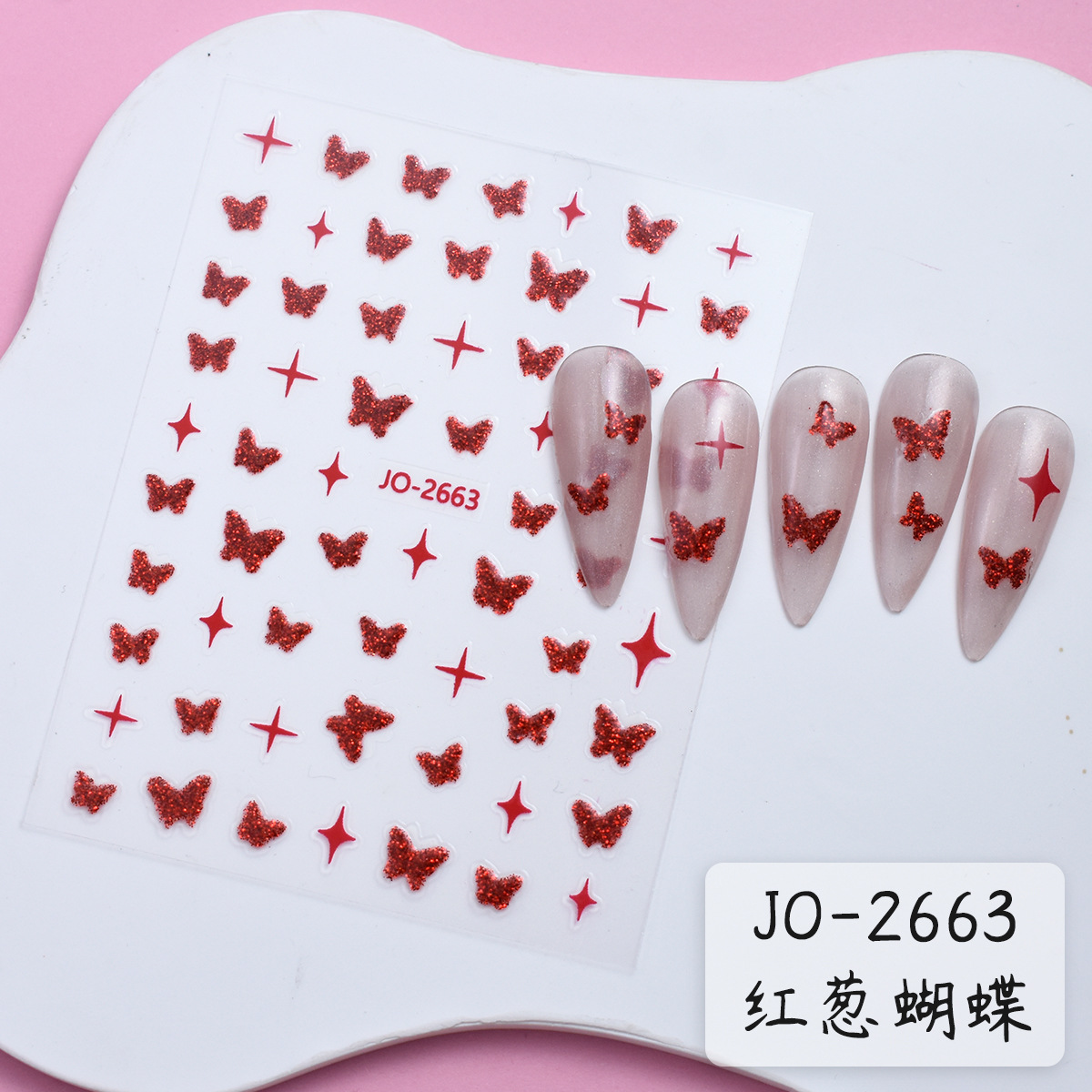 네일 아트 스티커 활 별 얇은 터프 나비 사랑 스타 마운트 데칼 레드 핑크 실버 3 차원 네일 장식
