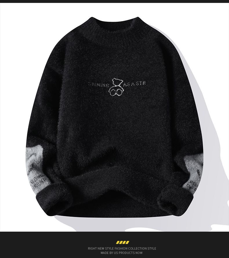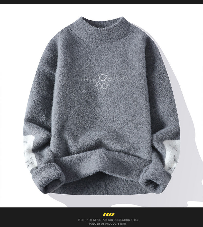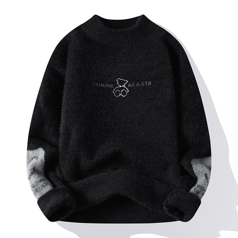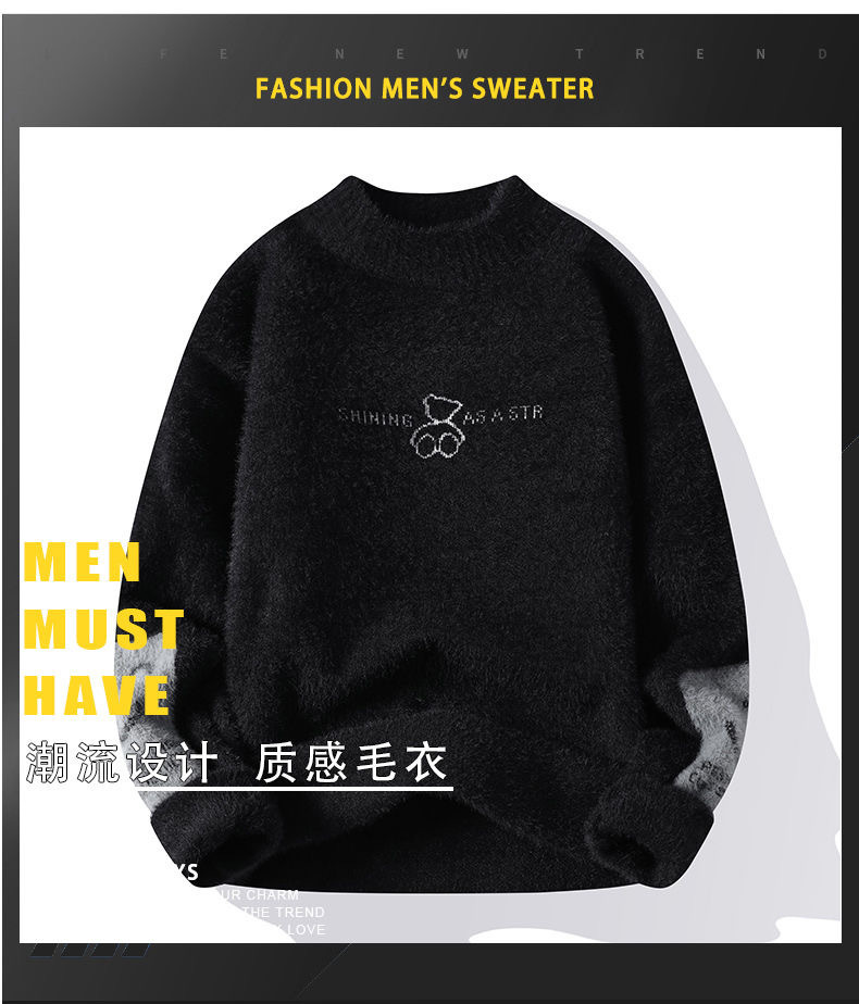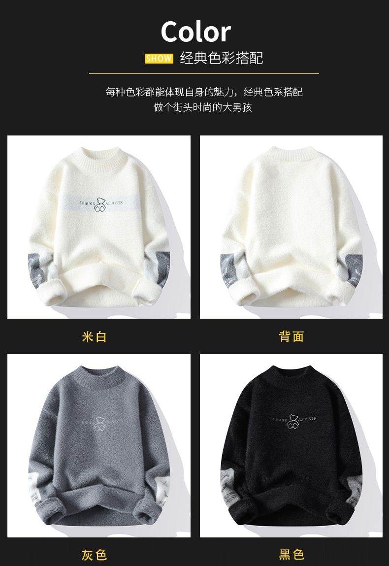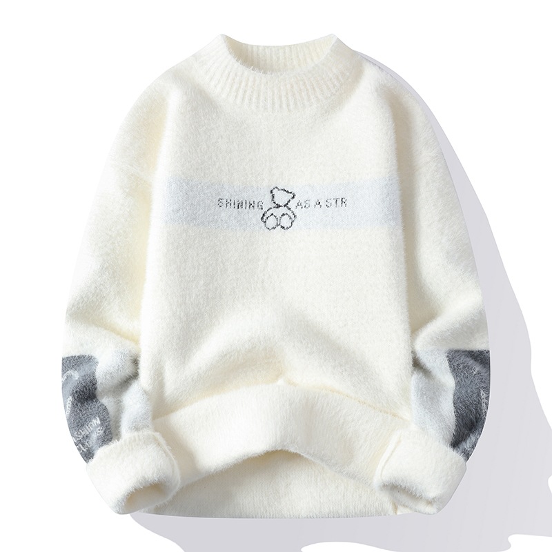 가을 겨울 남성용 포레스트 스타일 두꺼운 곰 스웨터 남성용 및 청소년 학생용 새로운 라운드 넥 바닥 스웨터스토어 가기