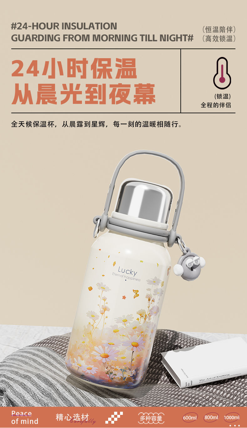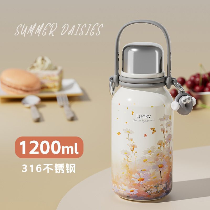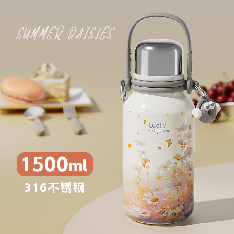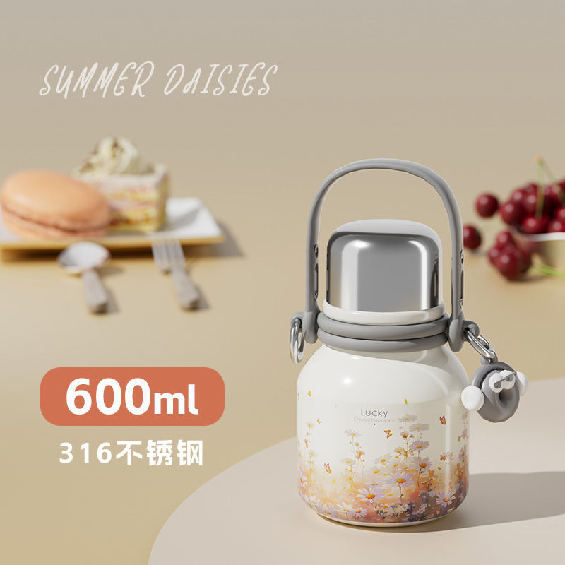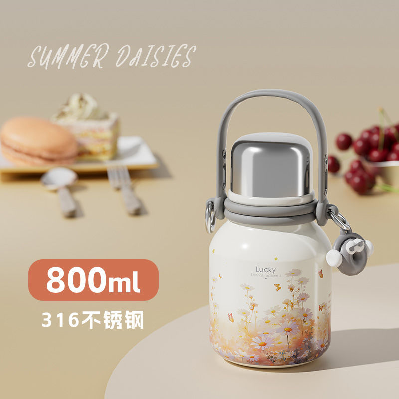 여학생을위한 대용량 보온병 컵 2024 새로운 하이 찾고 316 스테인레스 스틸 워터 컵 주전자 휴대용스토어 가기
